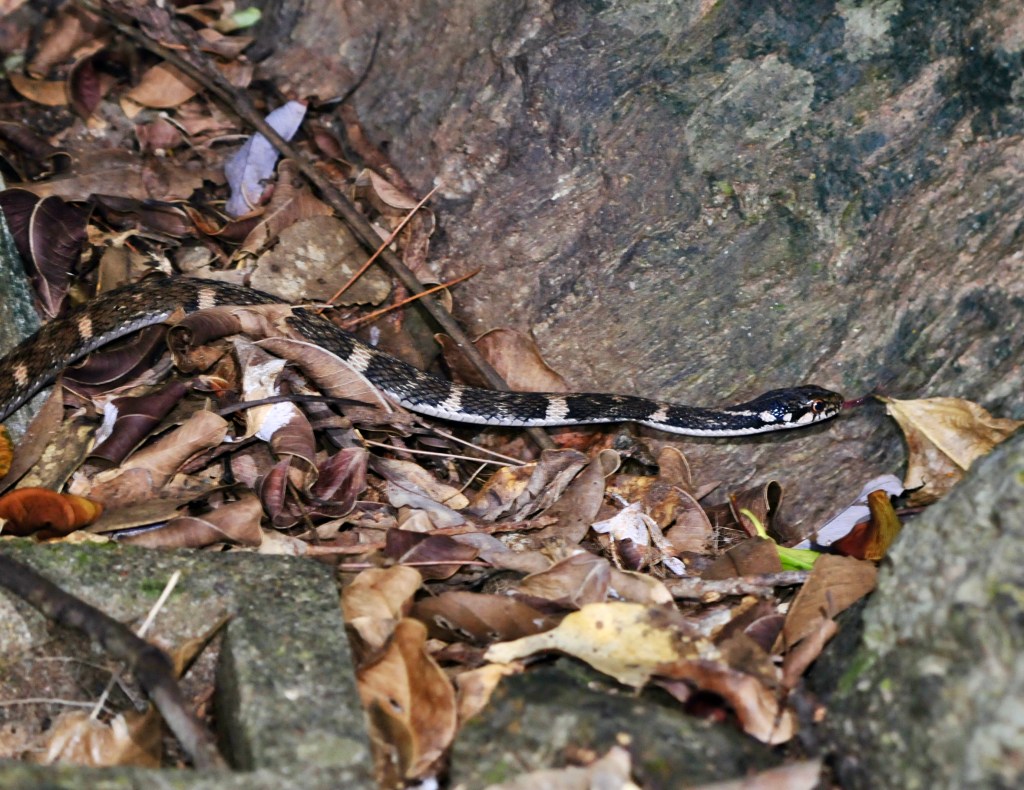 Within 5 minutes Ichiro san sees one! It is in a perfect spot at the end of a branch with no brush in front. We have an excellent view. The Kuina clamber up into trees to sleep. They are scared of Habus, highly venomous snakes that slide and slither around at night.