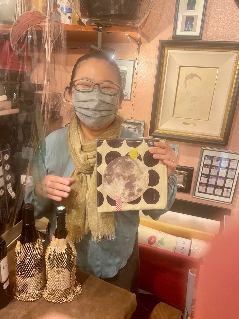 First to Hanada san’s amazing wine shop. She is so sweet. She gives me a Furoshiki and a very tender card.