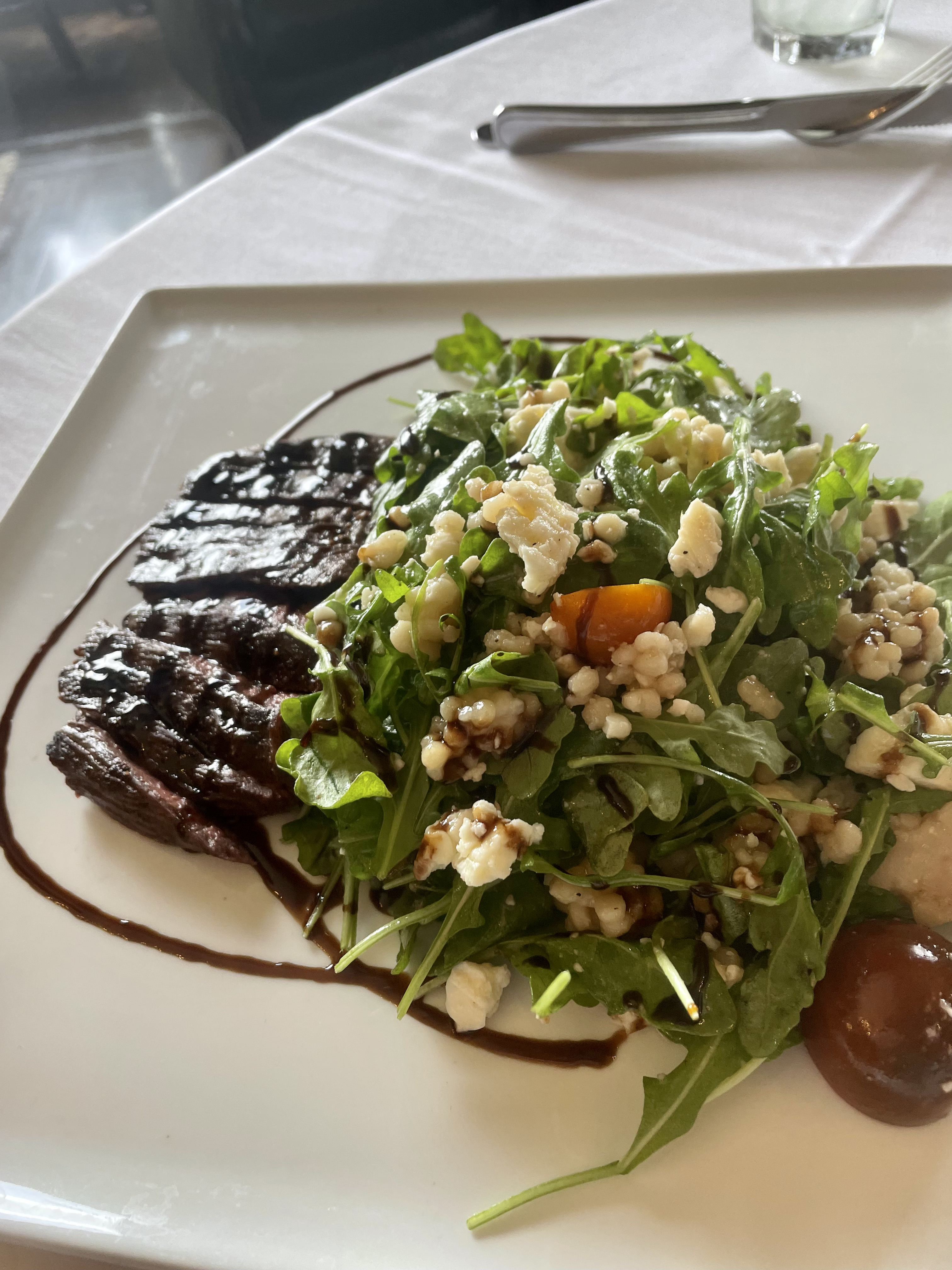We go inside to dine. Stiff white tablecloths, heavy cutlery.