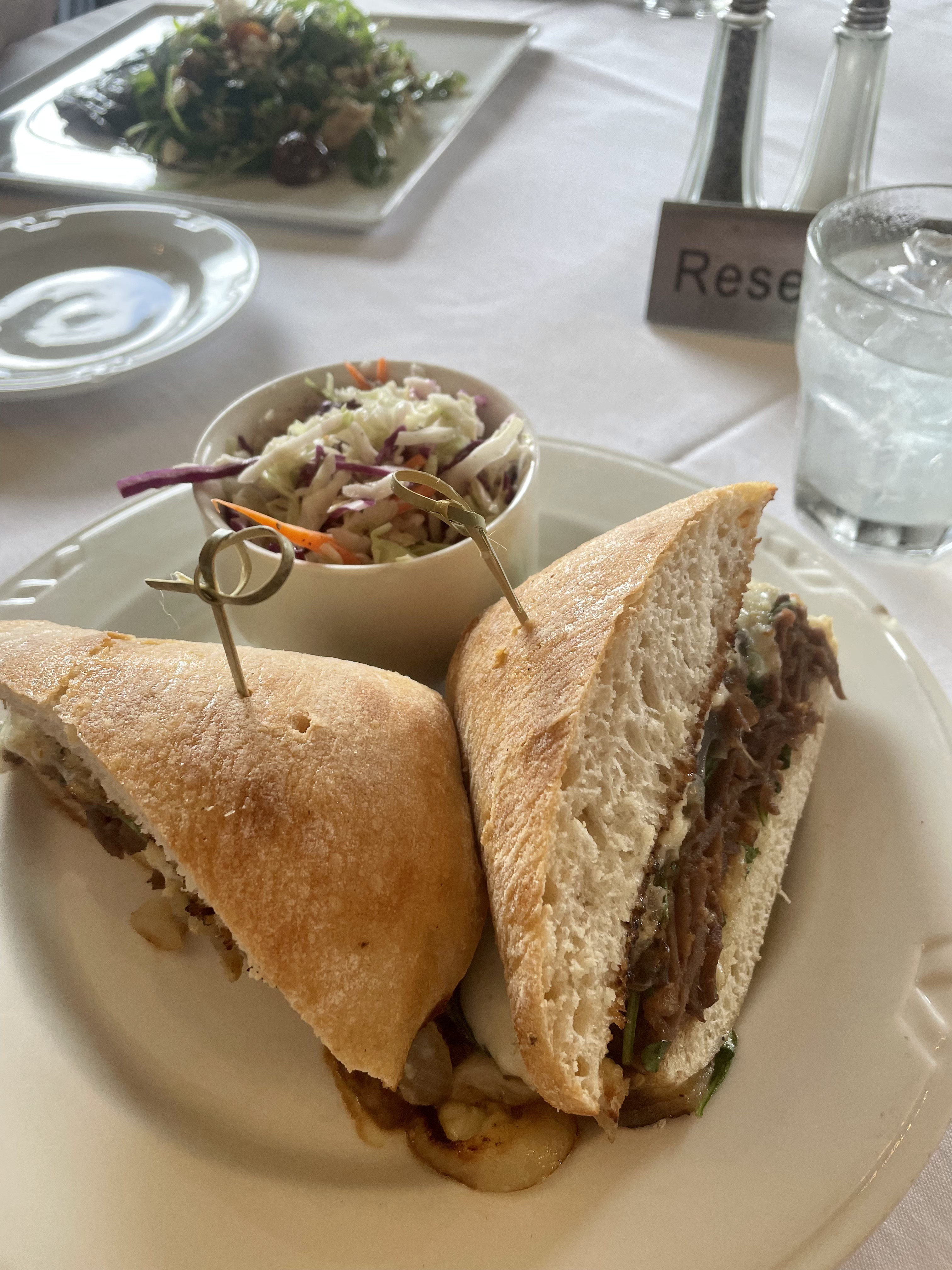 Beef sandwich. Me.There is a bowl of gravy out of shot into which you plunge the sandwich to make it all gooey.