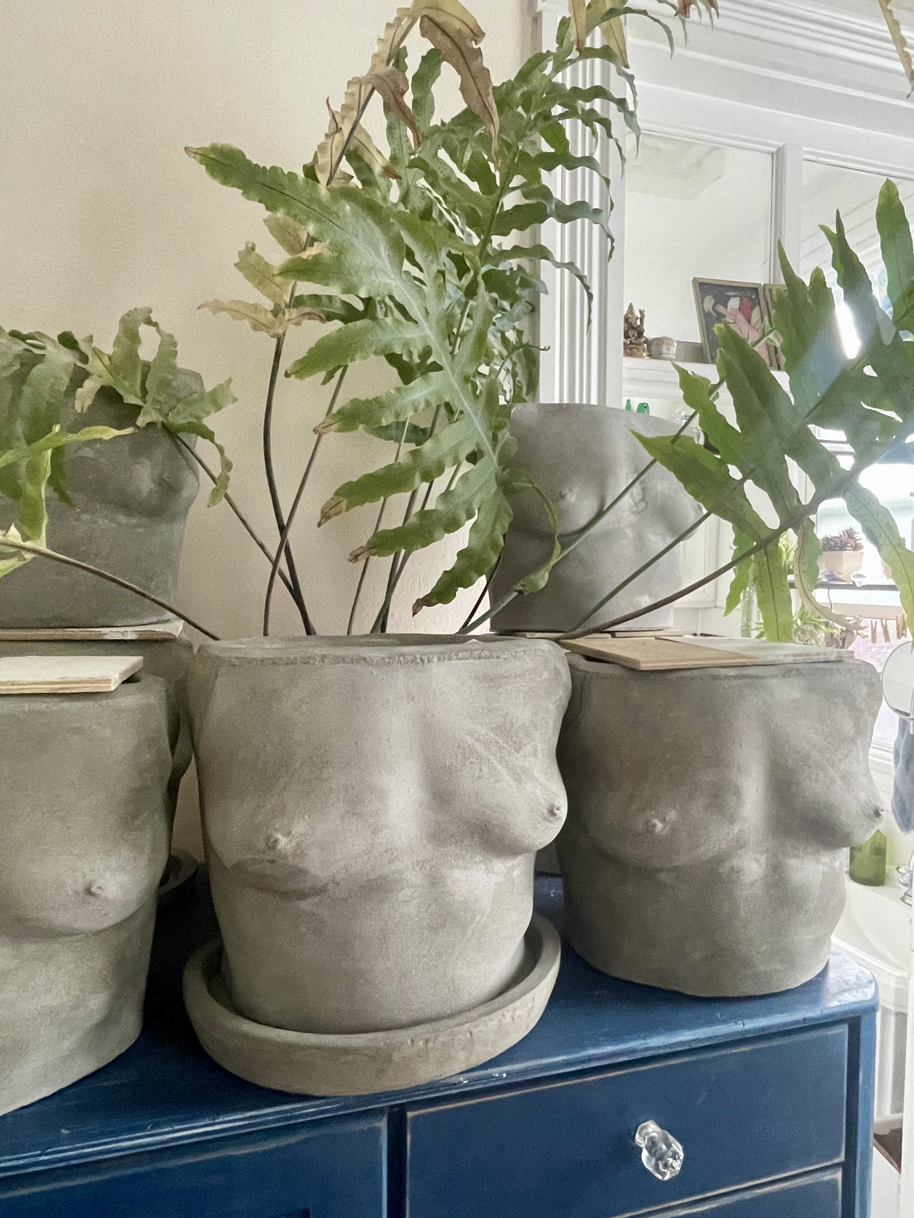 Son James makes wonderful planters modeled from the top bit of a female. I do not wish to be accused of titillation nor branded a pornographer. Nor do I wish the blog banned on the grounds of lubricity.