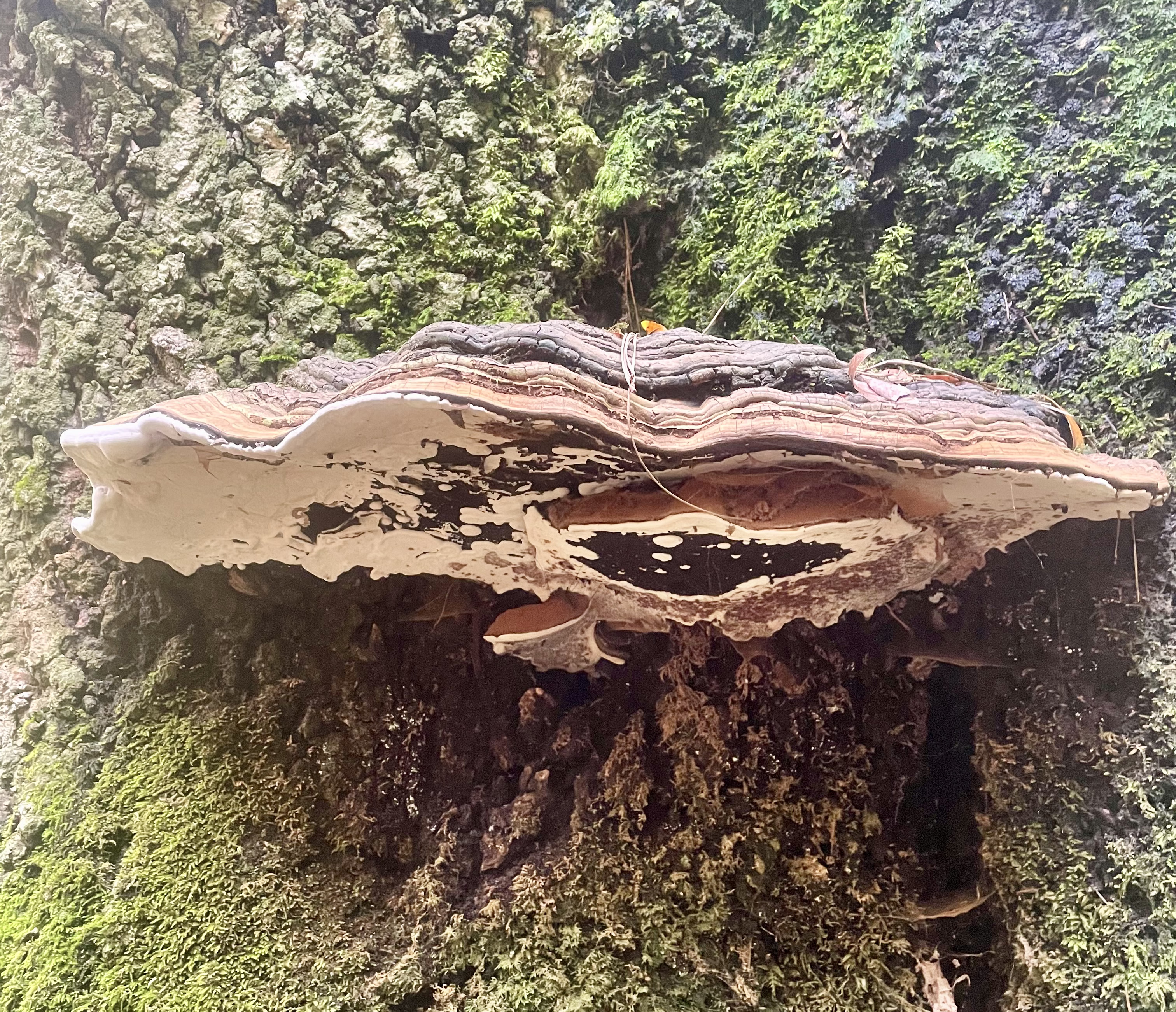 We stumble around the coastal forest looking for mushrooms. James is a mushroom expert.