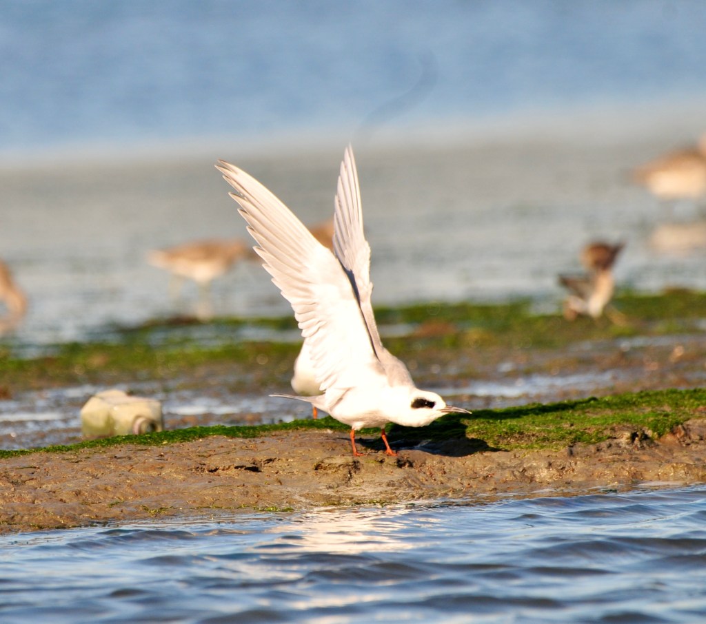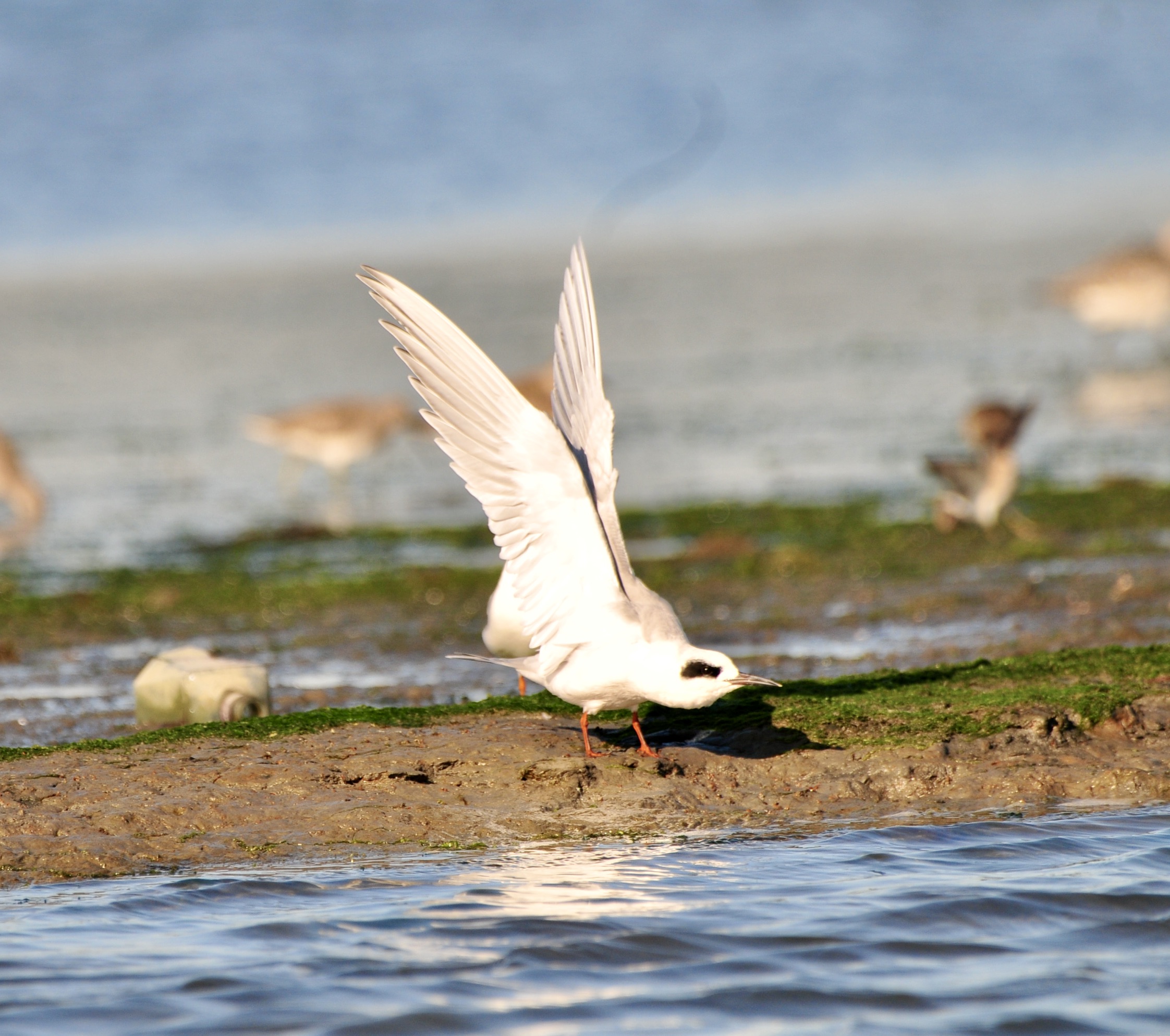 It is a beautiful morning as we glide out into the slough. Hundreds of pelicans and terns are diving all around us. The electric motor makes no noise and we go vey slowly.