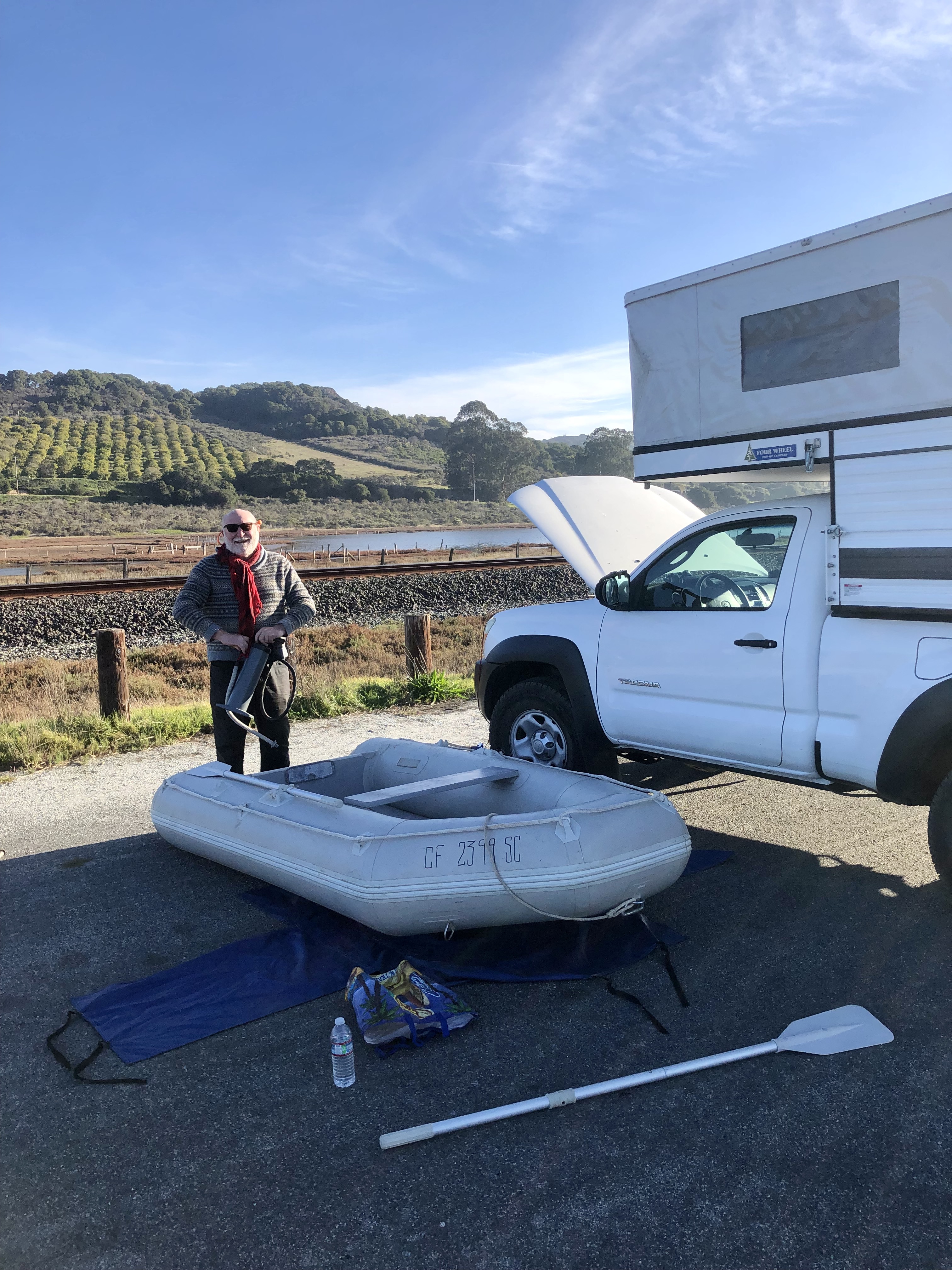 James and I prepare little; boat, Minn Kota, bedding, camera with big lens. We head down towards Elkhorn Slough.