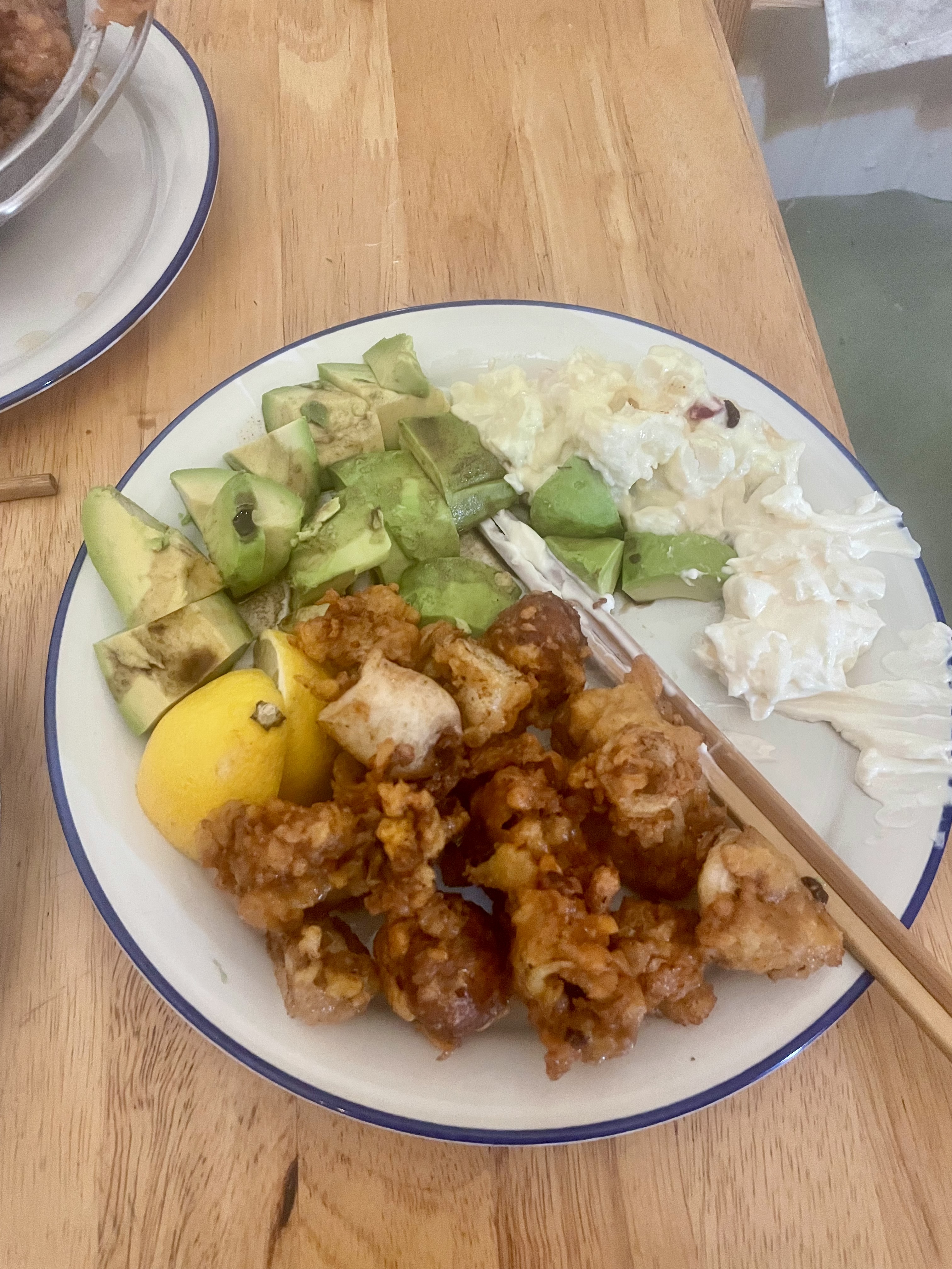 Squid tempura, potato salad, avocado. Not very West Highland.