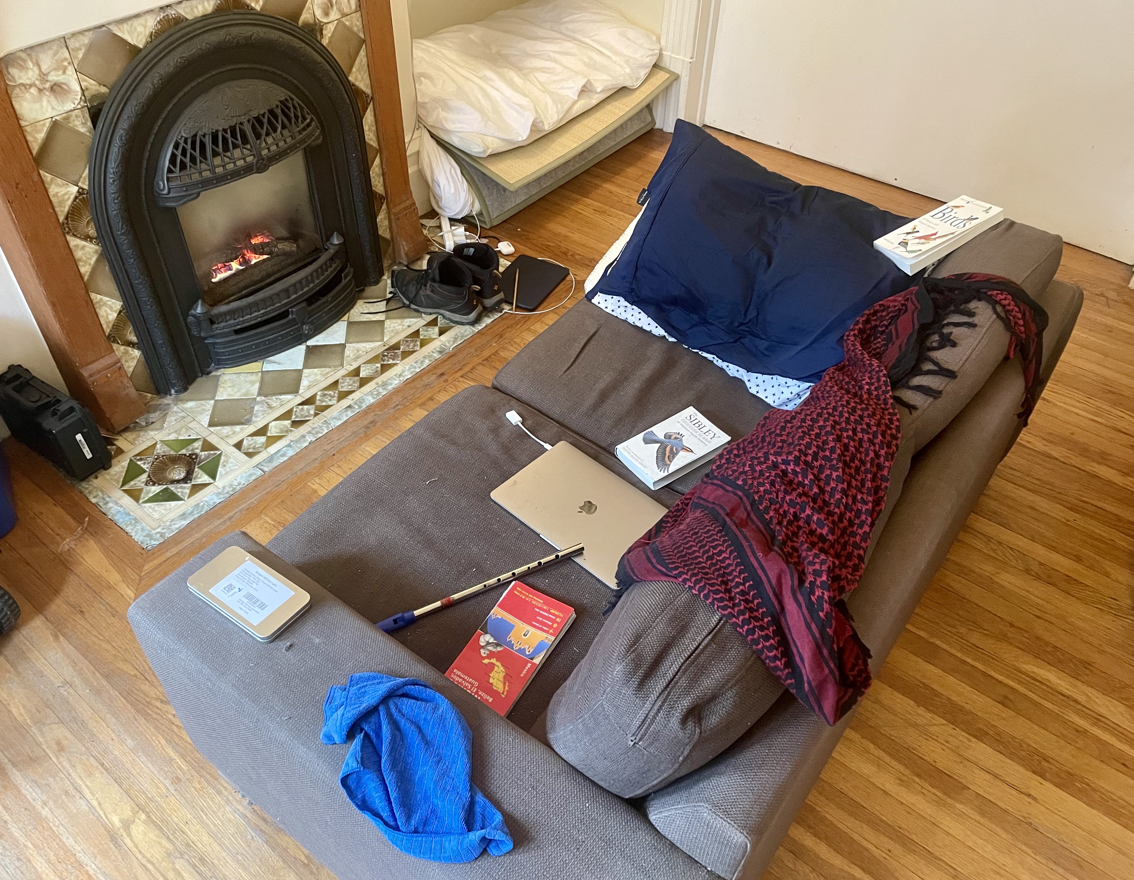 I lie on my sofa in front of the wonderful gas fire for days. I read excellent novels and plan routes around Mexico. It is so cosy, so snug, I am so happy.