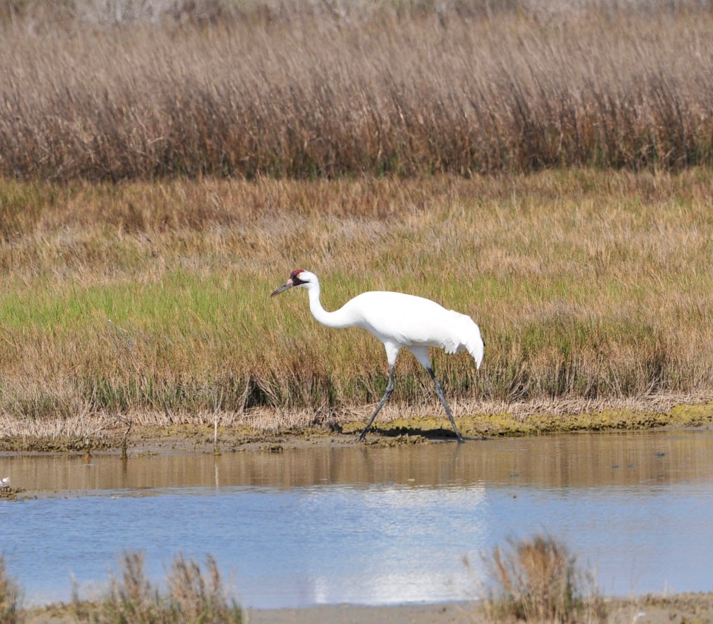 The Whooping Crane is one of the rarest birds in the USA.  A few hundred migrate down from Canada to the marshes around Rockport Texas. I am here to see them. I book a trip on a Whooping Crane boat but it is 3 days away. I spend this time on the incredible beaches of Mustang Island and Padre Island.