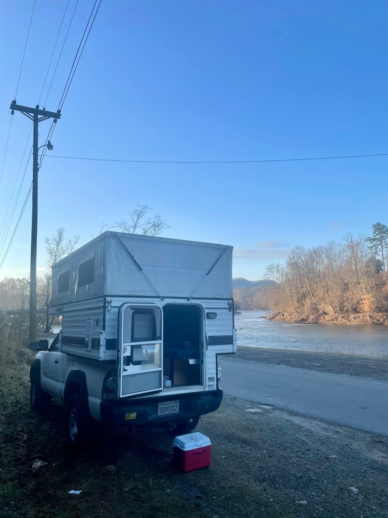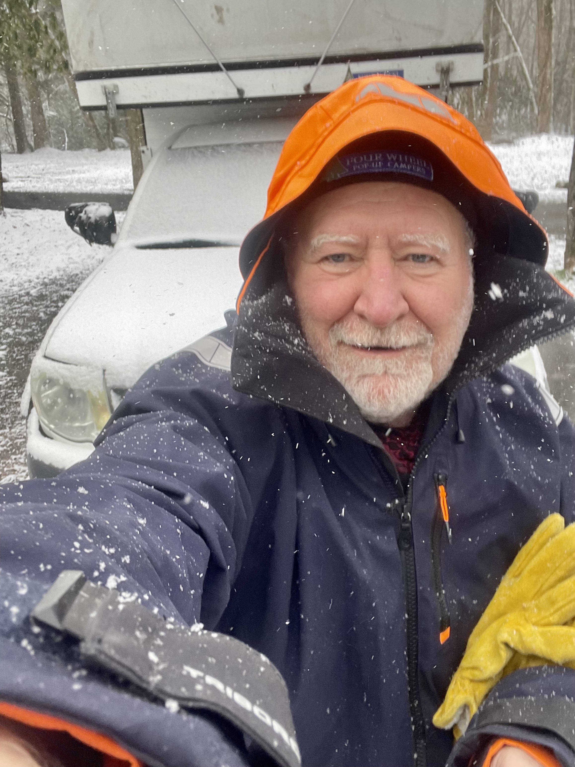 Again before I get to Charlotte, I am snowed in way up in the Smoky Mountains National Park. The park closes down for 2 days. There is nothing for it but to snuggle down in the camper. It is wonderful; plenty food, plenty drink and the furnace is working perfectly. So cosy!