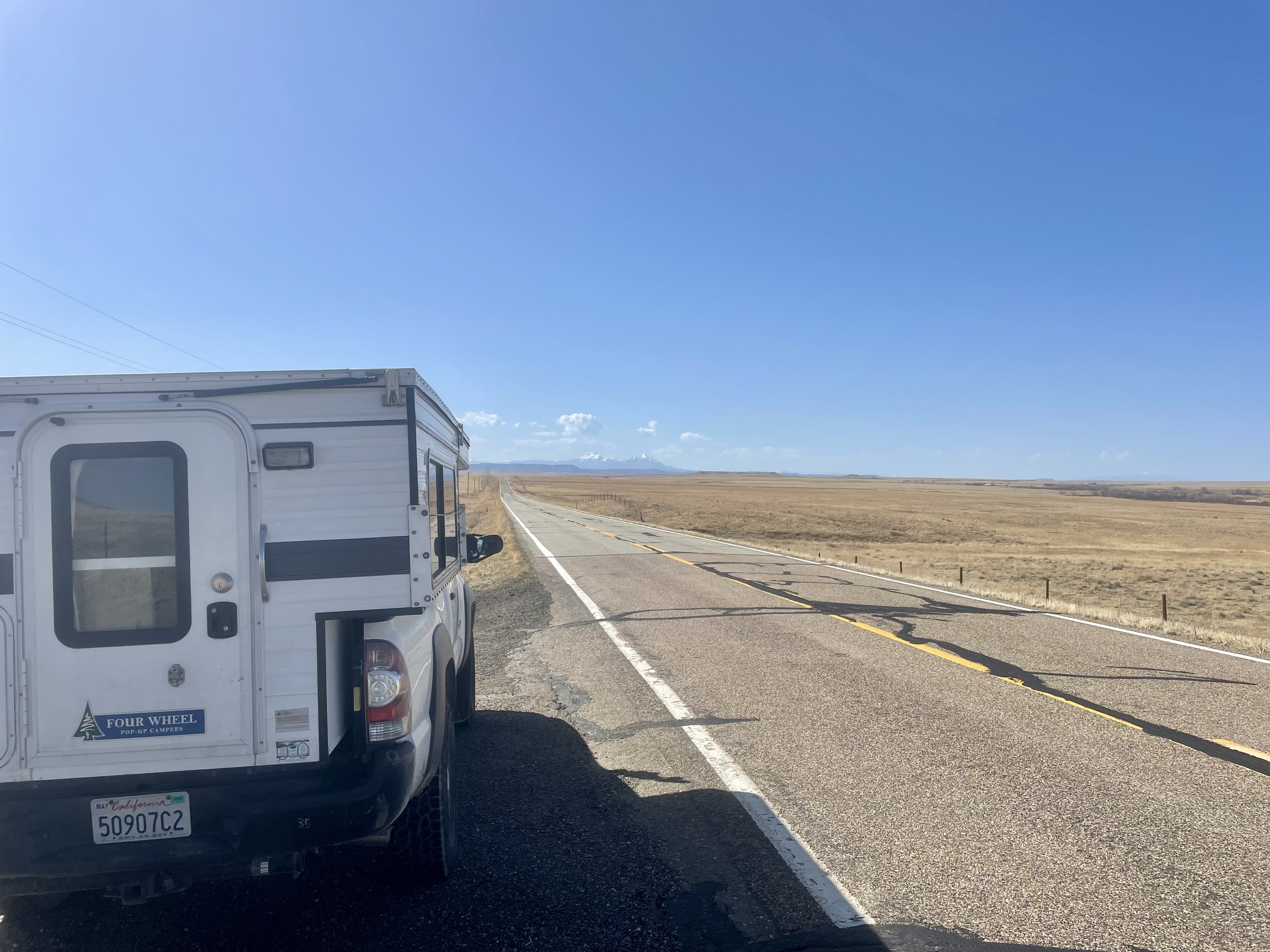 Eastern Colorado is just as flat as Kansas. I rub my eyes. Is that snow?