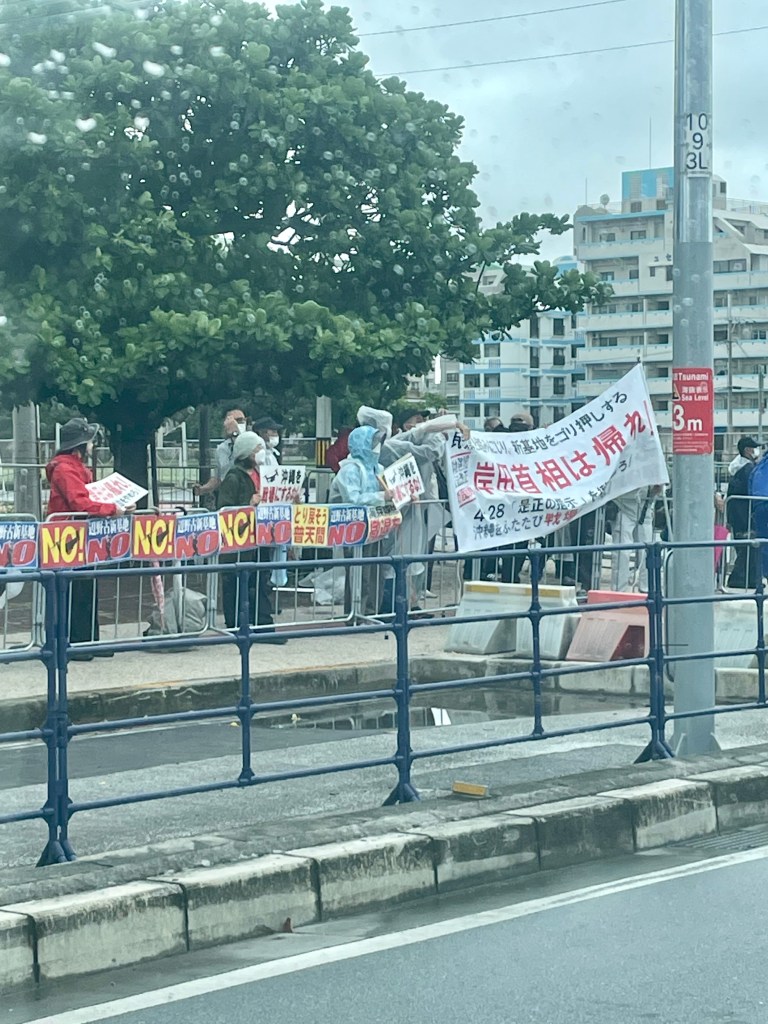 Anyway, today there is a ceremony to mark the 50th anniversary of the reversion to Japan. Kishida san, Prime Minister, and a slew of notables will attend. It takes place in the Convention Center, which is a skip and a hop from my place. I drive down to check on the boat as it has been raining ferociously, as usual. There are security people everywhere.