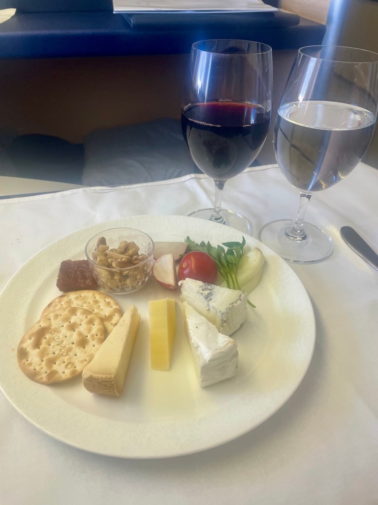I have one of the best meals ever, washed down by some of the world’s best wines. Hard to believe I am on a plane.