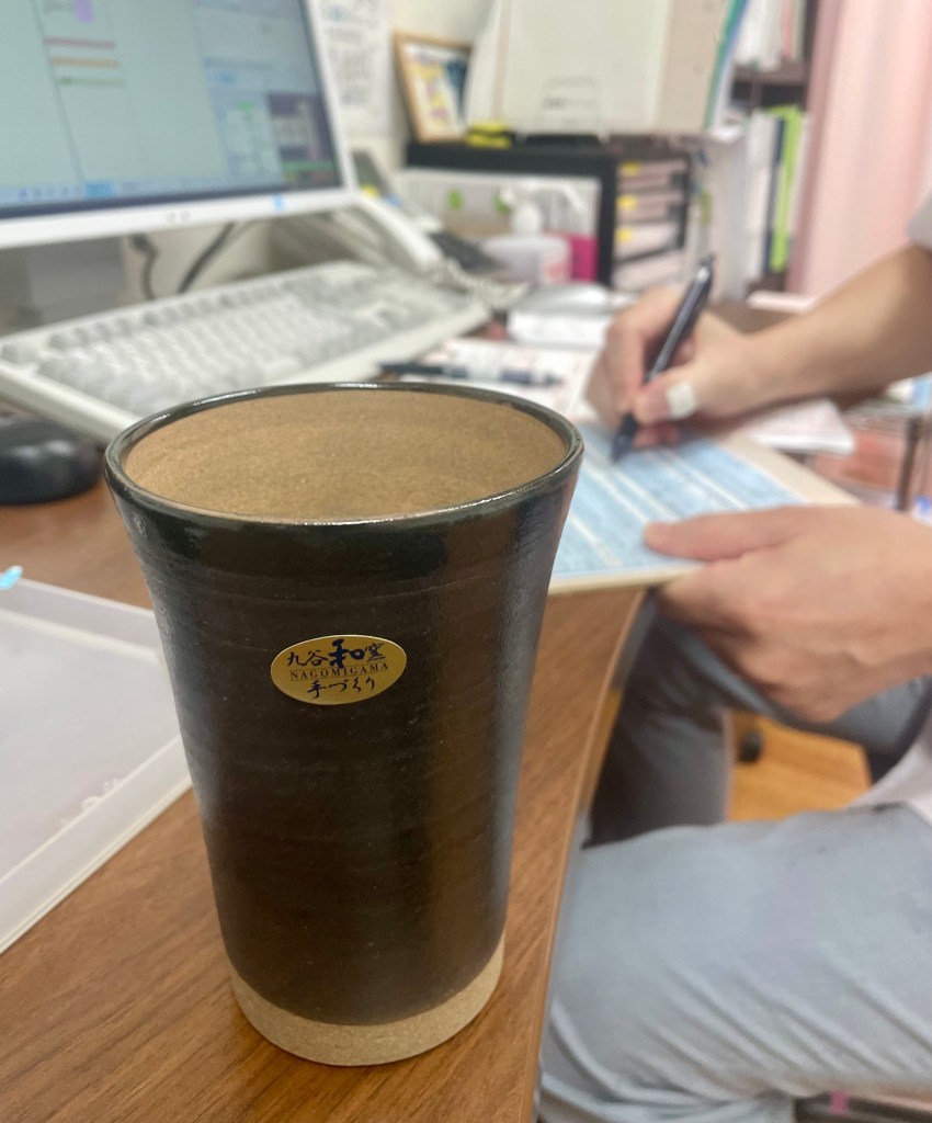 Nagasaki sensei, er the doctor, has become a friend. He gives me a a beautiful pottery beer mug.We understand each other.