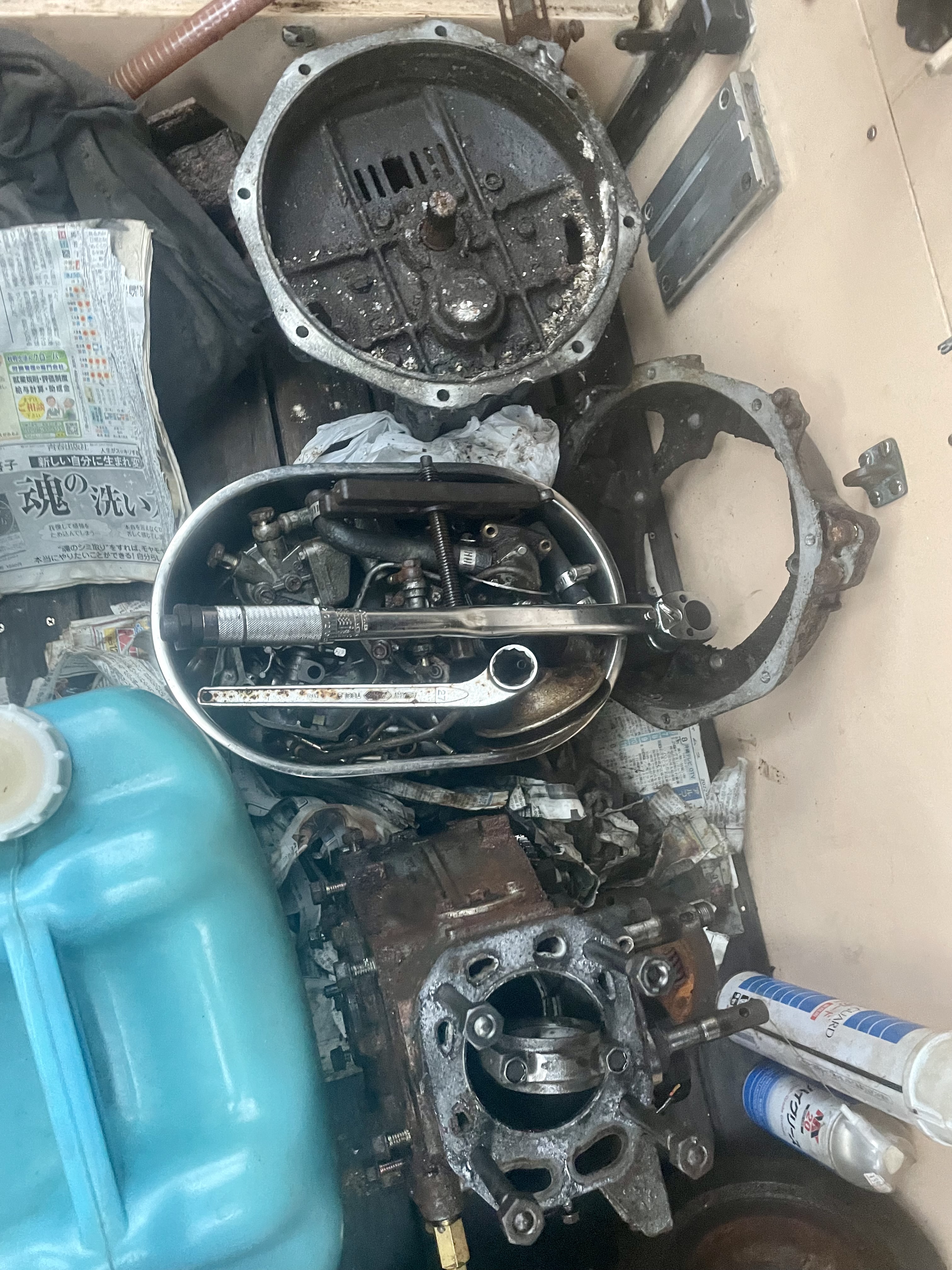 OK the boat, I mean that is why I am here in Okinawa really. Kiyuna san calls me. We go to look at the current engine status.