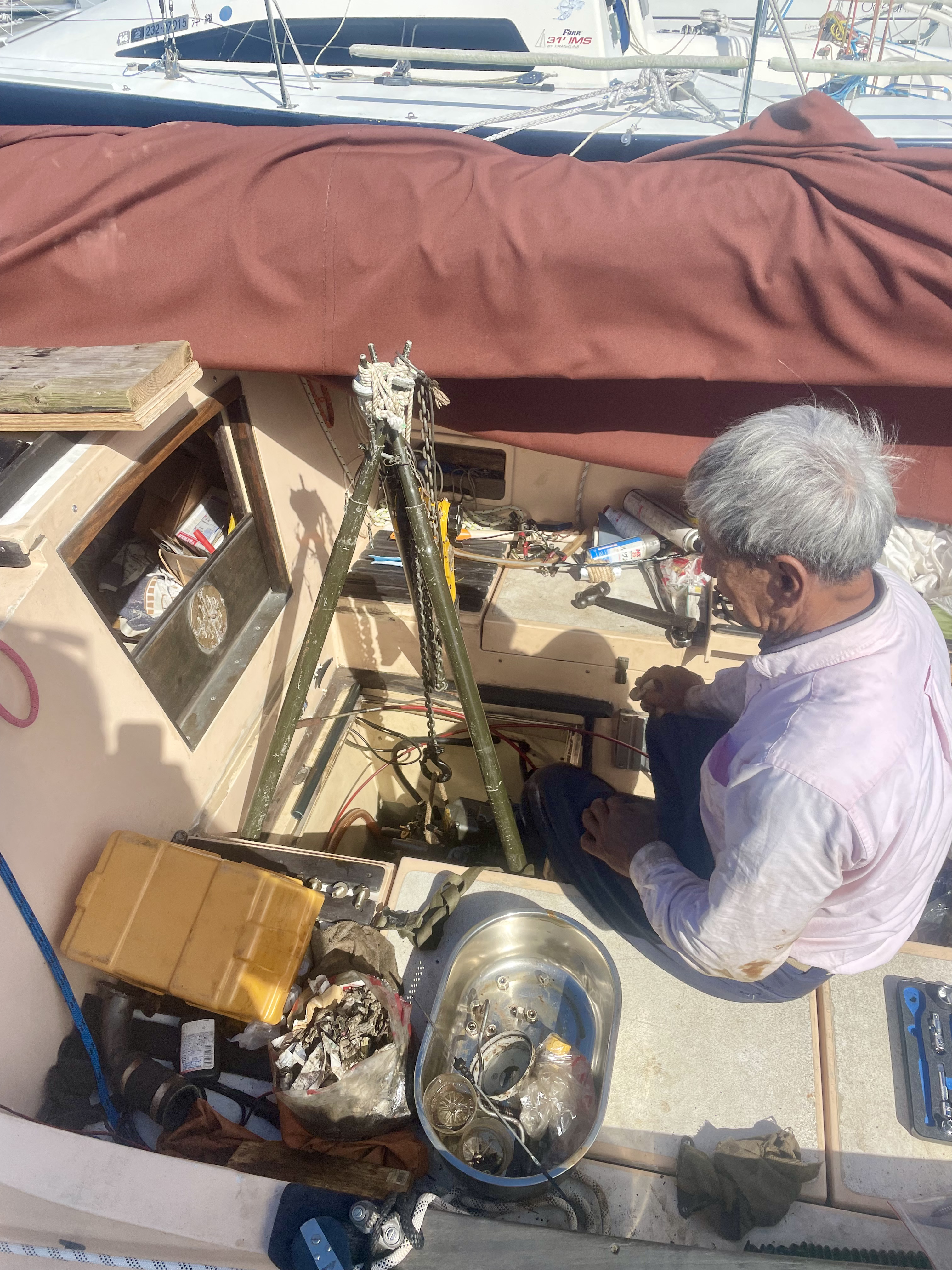 Kinjo sensei, a dab hand with the auger and ratchet.