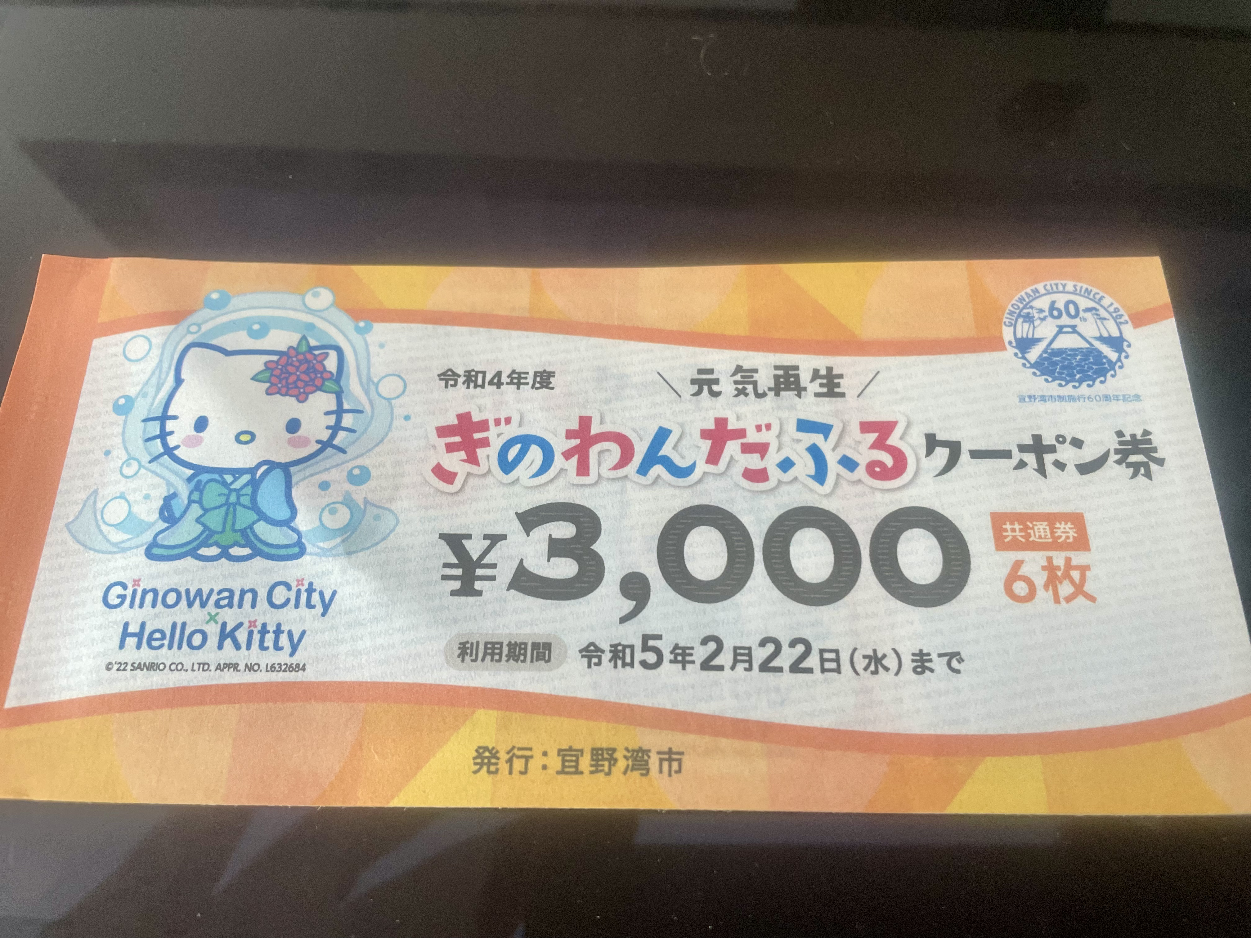 On the same theme, the Ginowan town hall sends me a booklet of vouchers that I can exchange for sashimi and stuff in local shops. Hello Kitty.