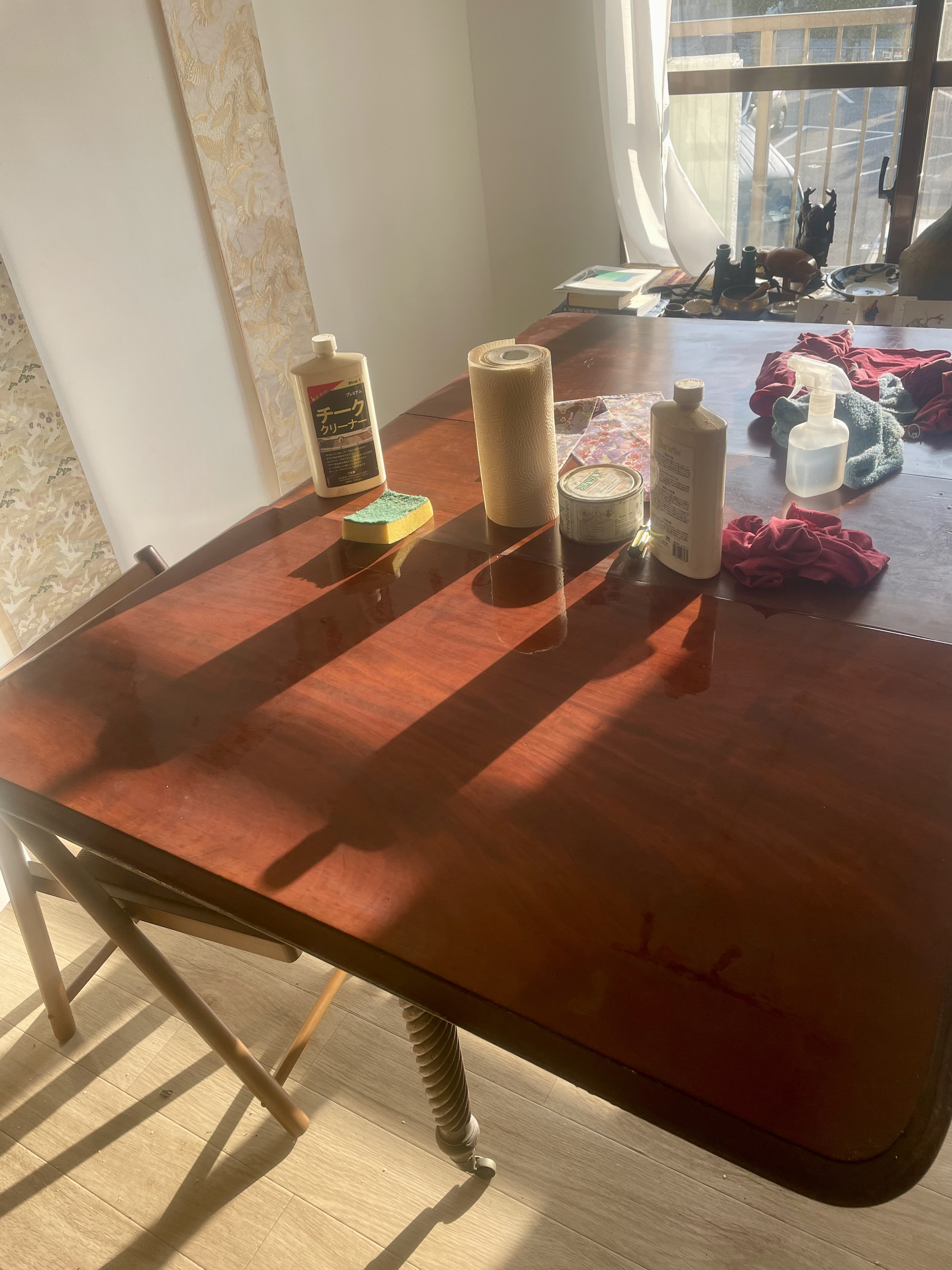 I am lucky enough to have a beautiful mahogany table. I have spent a long time cleaning and waxing it.