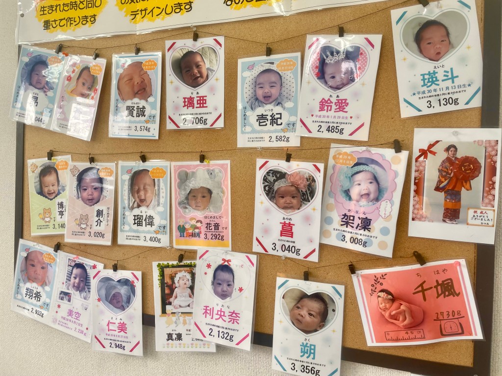 There is also a board with cute photos of newborn babies. Their weight is highlighted. Arisa once explained what was going on but I have forgotten. Maybe you give the family the same weight in rice.