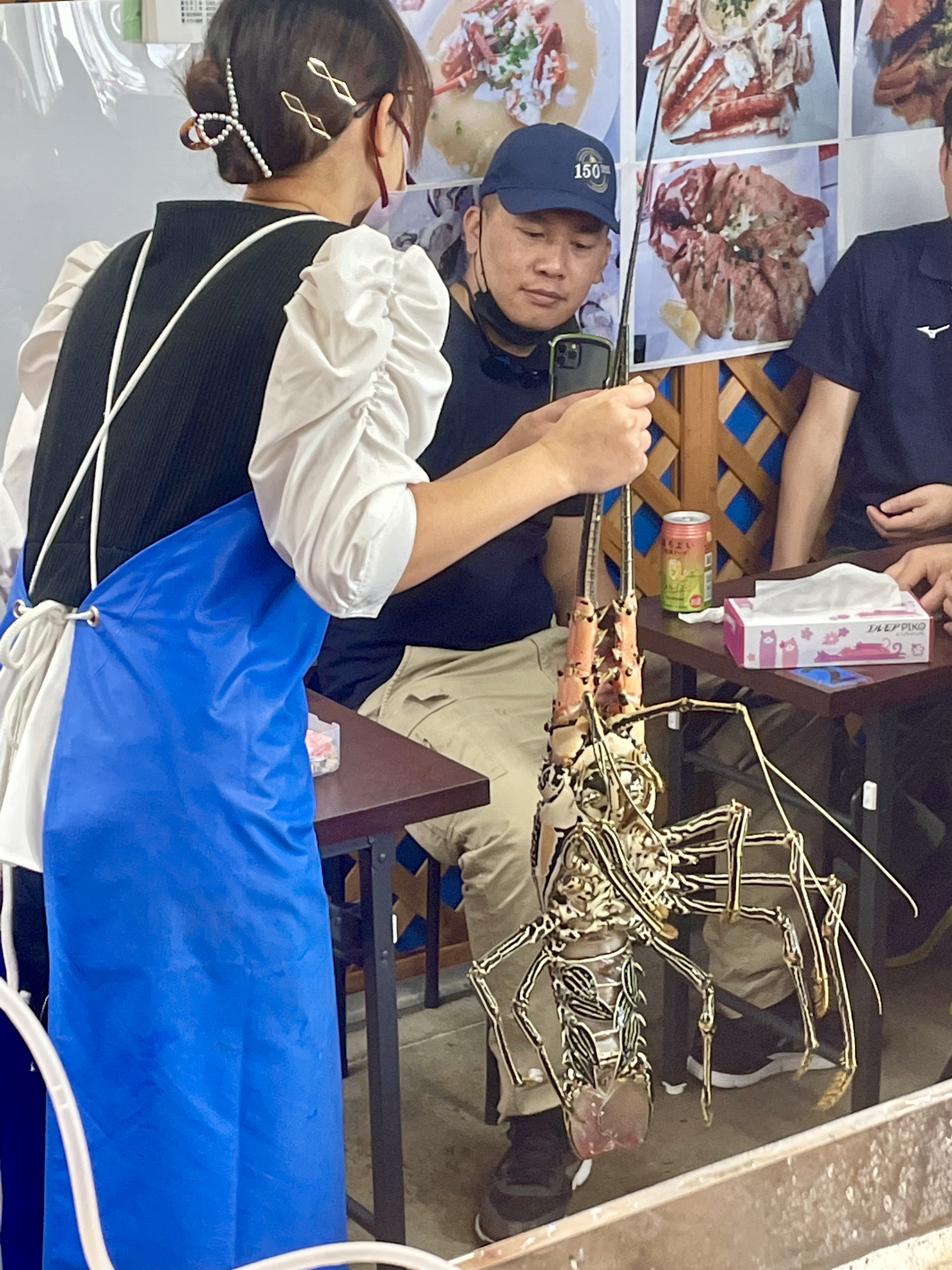 There are a few tiny restaurants with 2 or3 tables where you can have the stuff you buy er cooked. These are now packed with folks from Korea and Taiwan scoffing the most exotic shellfish.