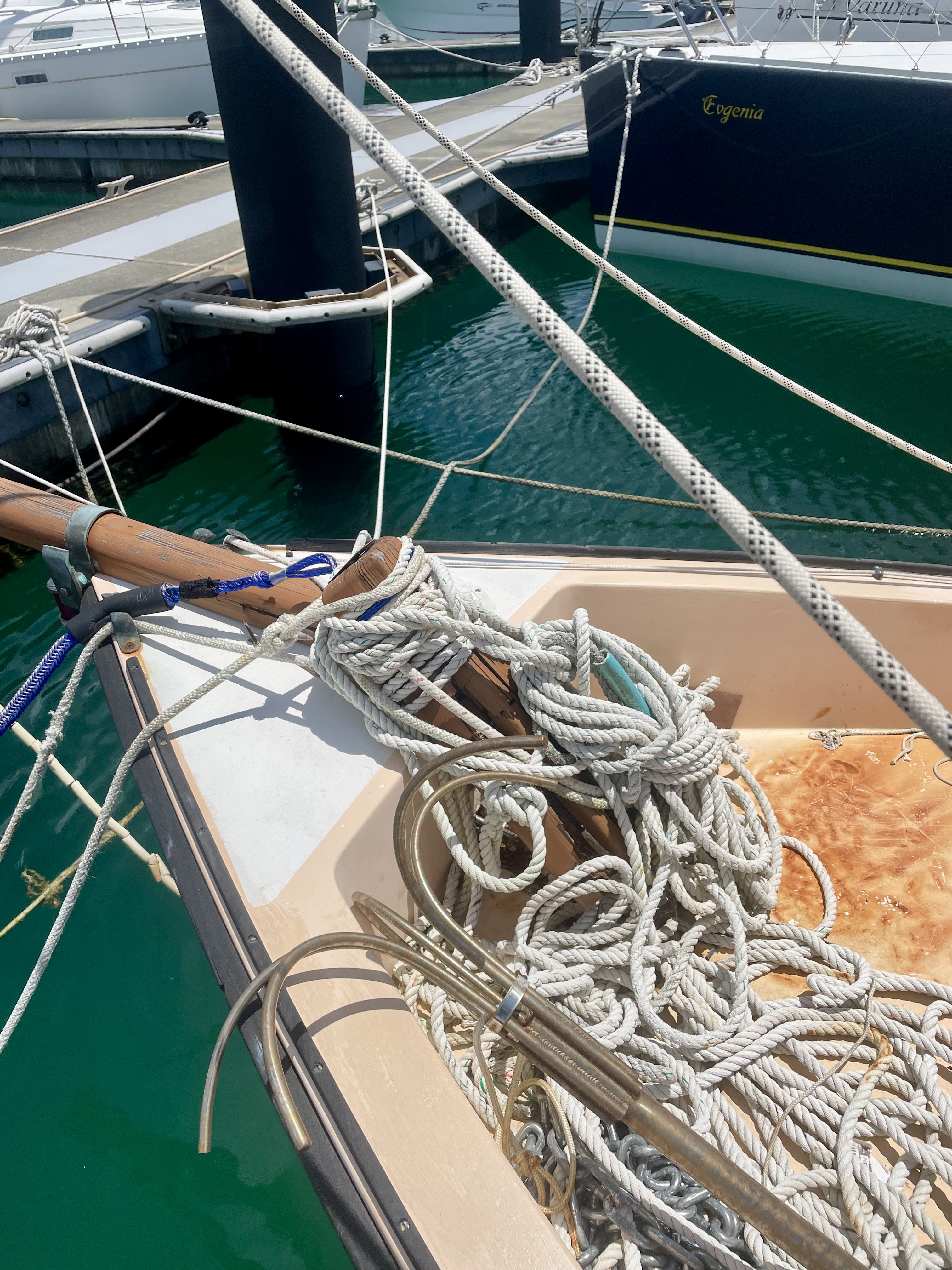 This was a great project but once again the crushing heat made it it very tough at times. I still need to adjust shrouds and fix the jib but I am more or less ready to start sailing adventures again, Er, unfortunately I go back to California in a couple of days!