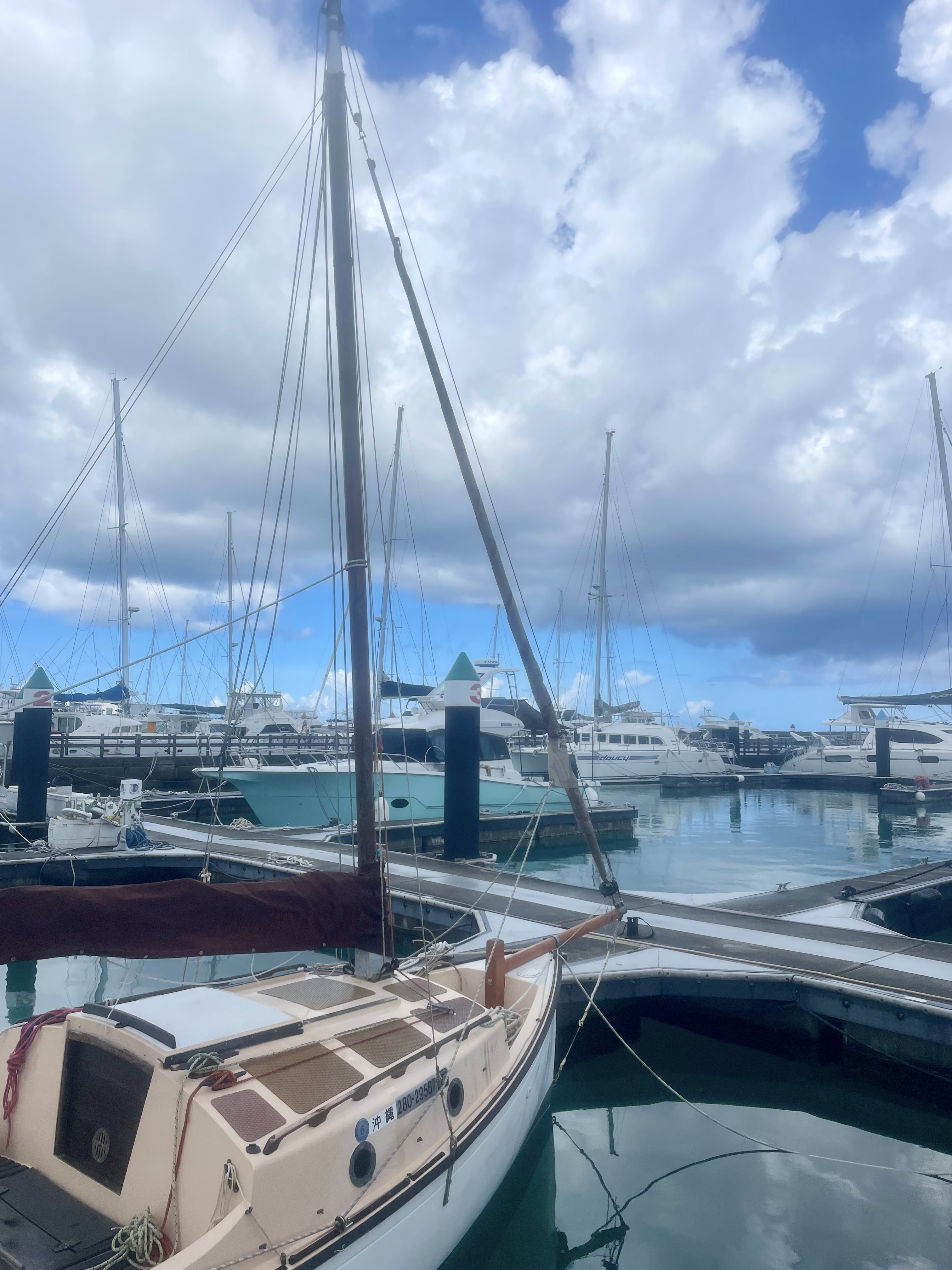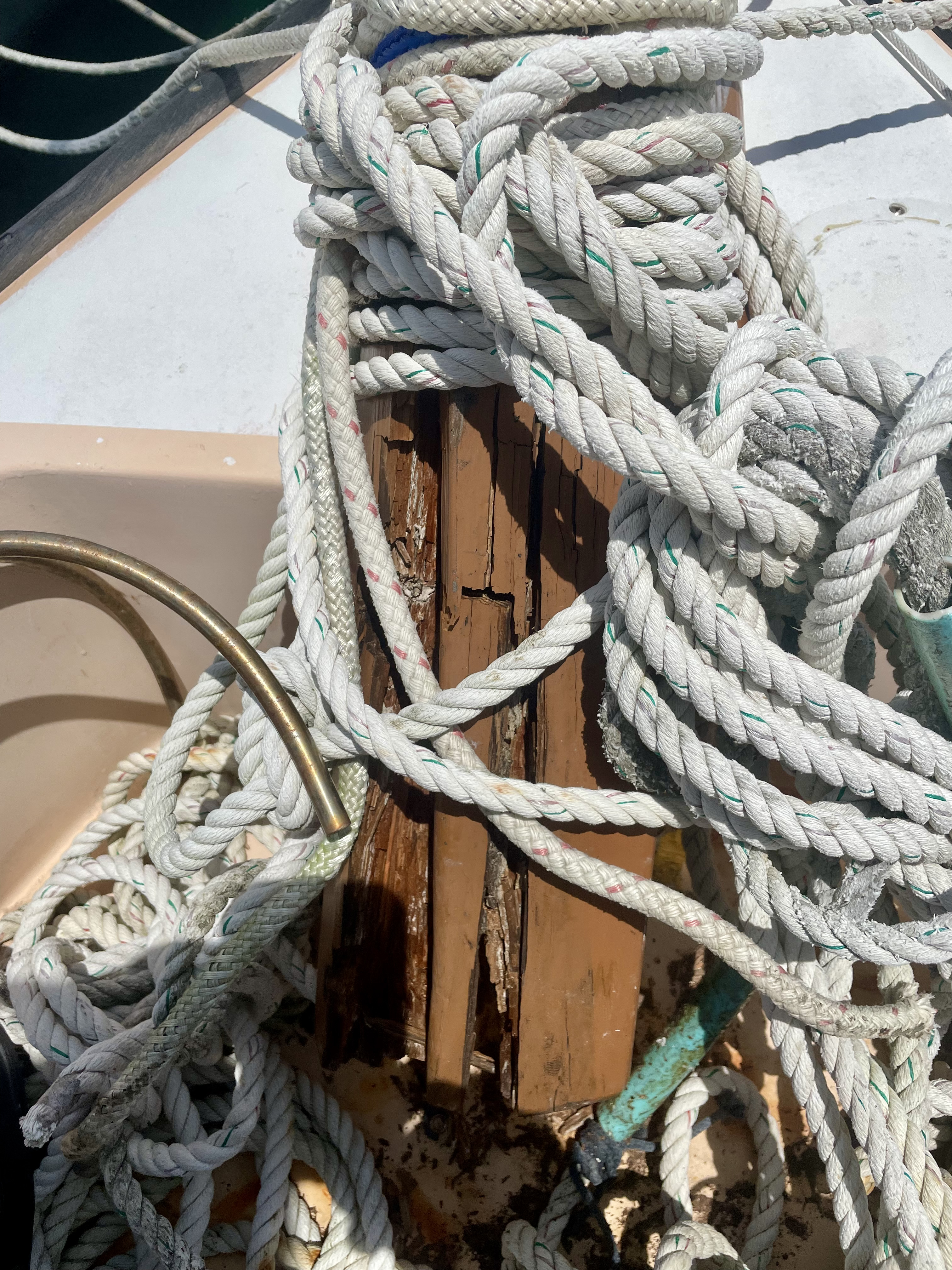I return to Okinawa to spend six weeks of blissful sailing adventure. As usual with boats, things do not work out as planned. While away in California there was a small typhoon resulting in much tugging on the bow mooring lines made fast to the samson post.