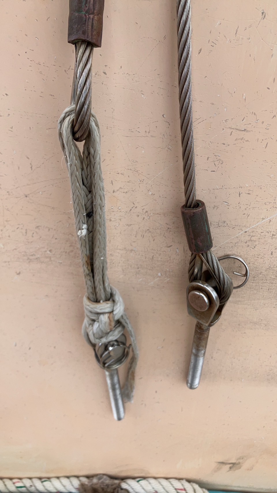 Interestingly I recently replaced the tarditional lashings for the forestay and side shrouds with turnbuckles. I could never get the shrouds tight with the lashings. The wind unscrewed two of the turnbuckles releasing the forestay and port shroud. I thought the lock nuts were tight but clearly not.