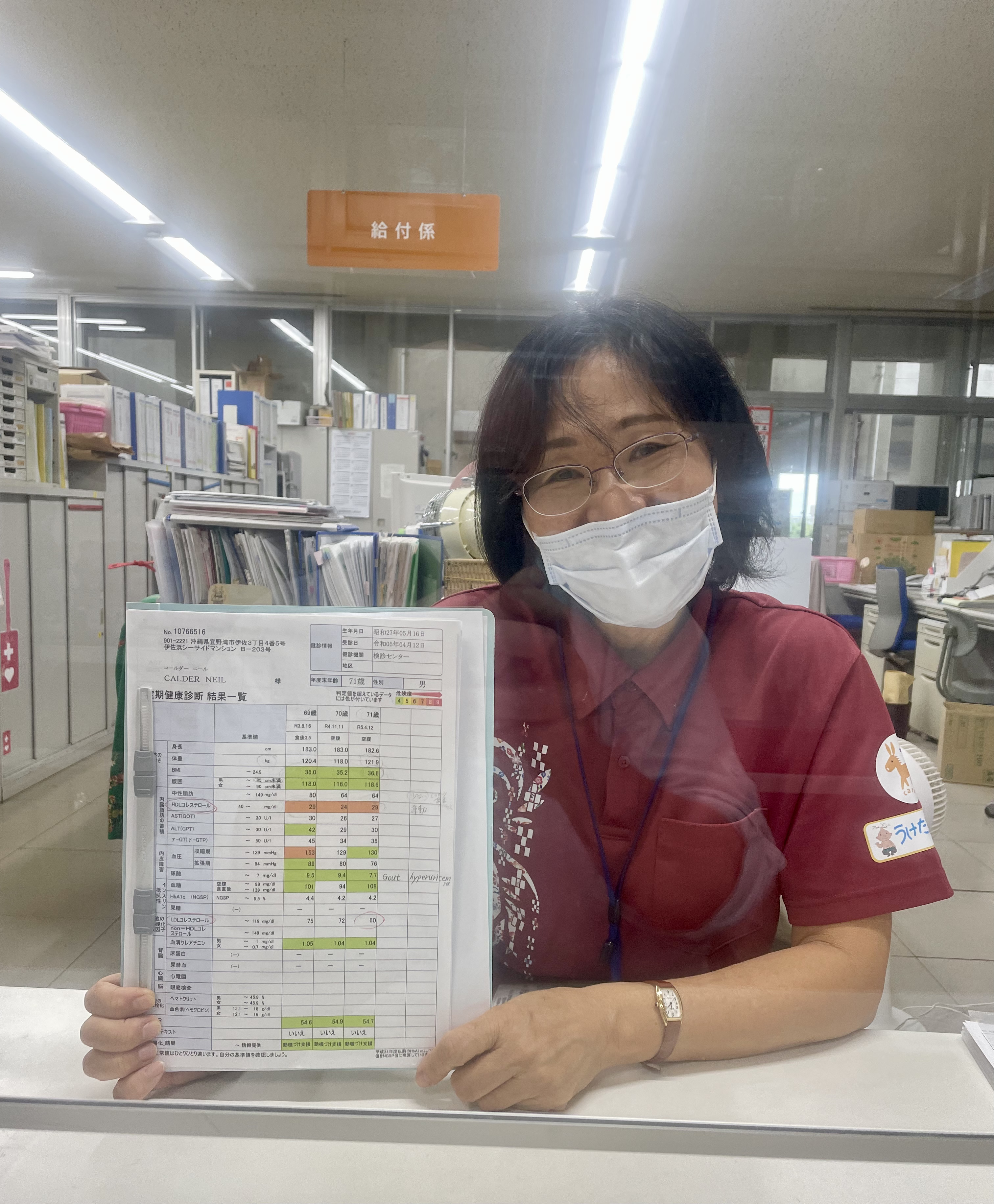 Komesu san from the Ginowan Health Service contacts me. She explains that she is a Public Health Nurse and has been looking through my health records and would like to talk to me. We have a special appointment and she spends an hour going over my potential health problems as an old timer.