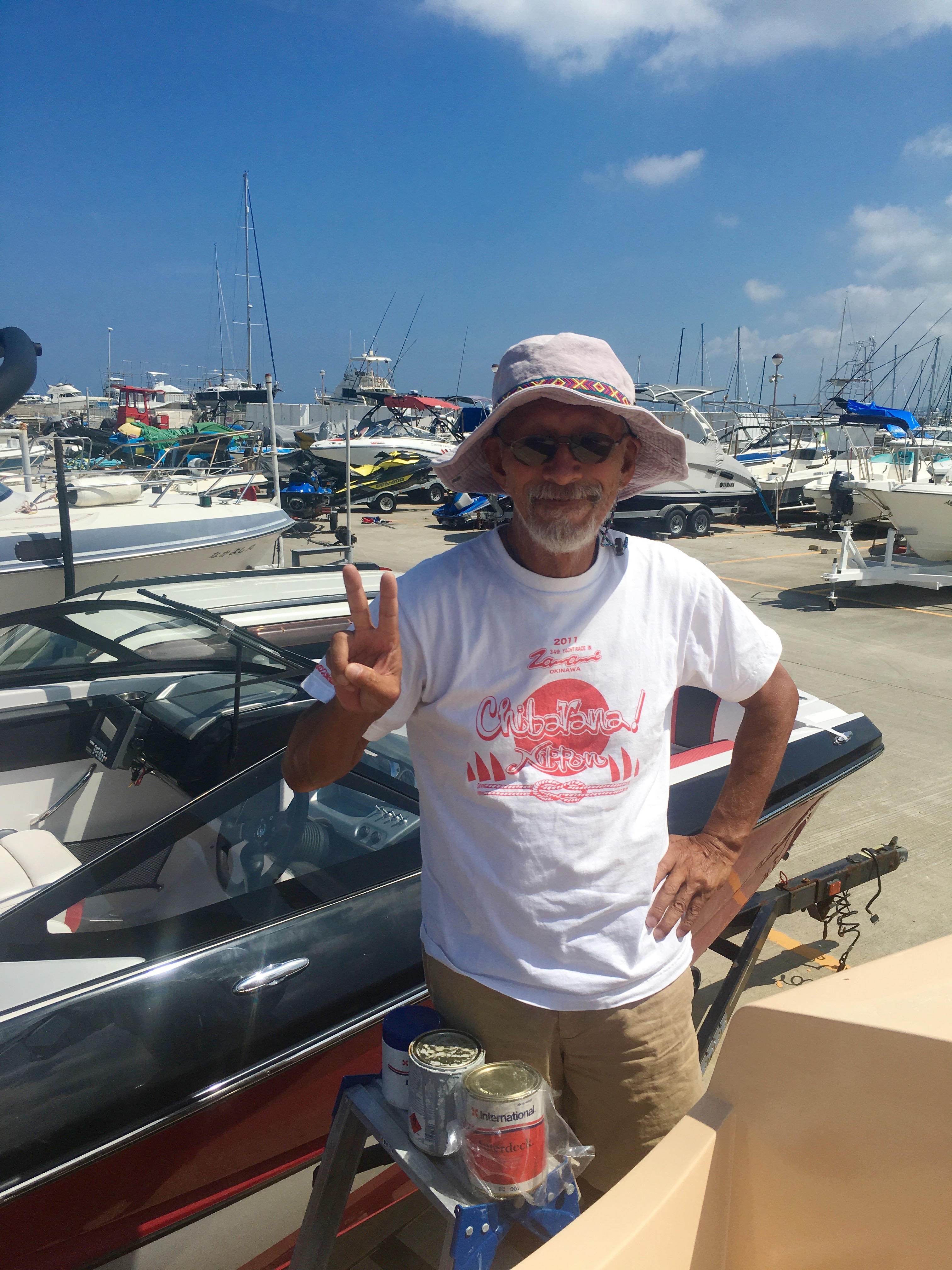 I meet up with Jigen san and he is another in the long line of Okinawan smiling boat saviours.
