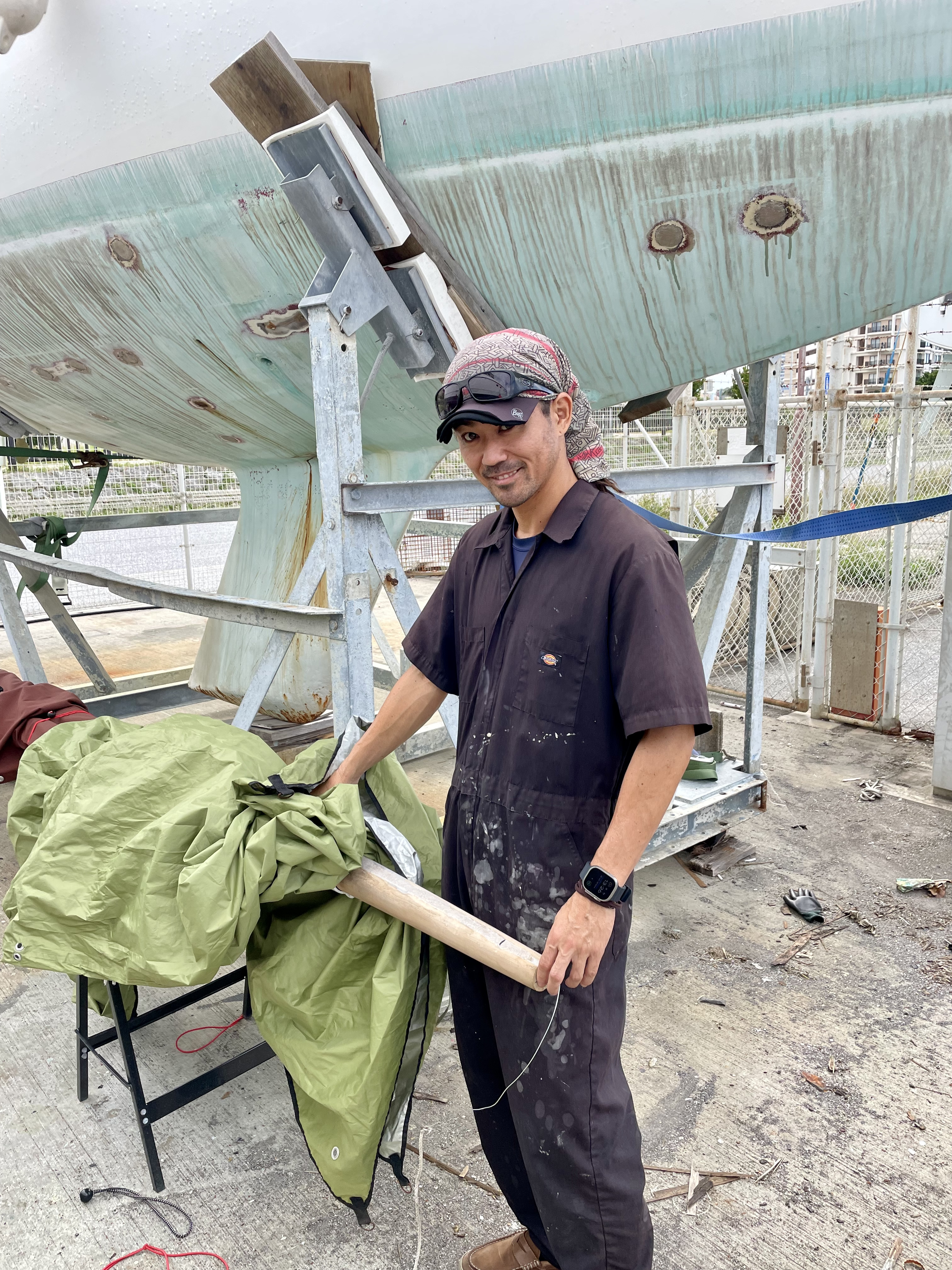 ” Can you install the rolling reefing and set up the new sail, Jigen san?” He says, ” Why man, that’s my hobby.”