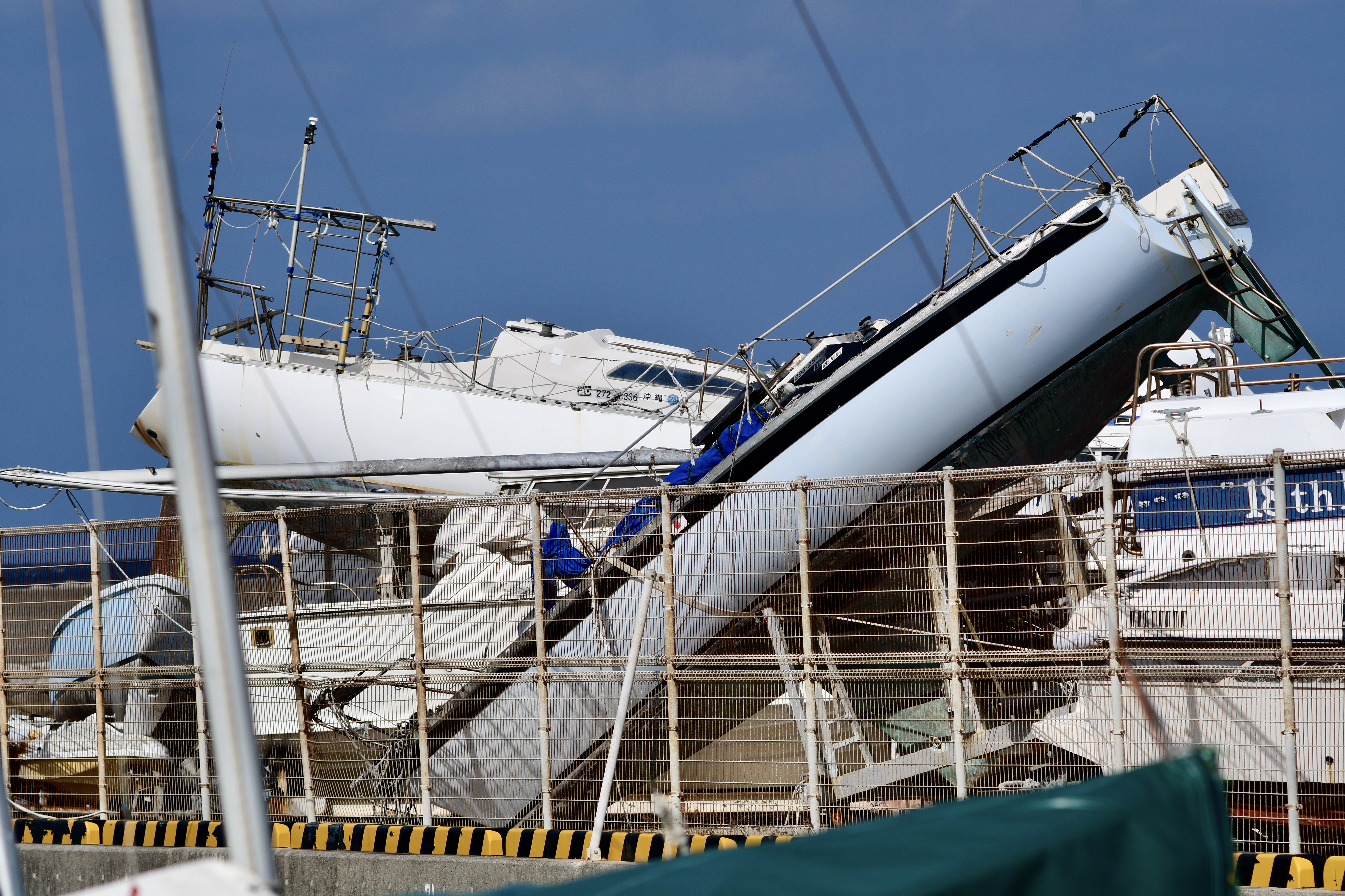 A distant corner of the marina is used to stack up boats that died valiantly during typhoons. It is a chilling sight.