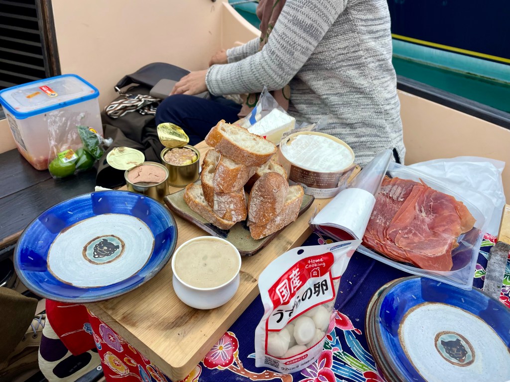 We have a picnic on the boat. I go down fairly early to take off the cover and generally clean up. It is the most beautiful morning, bright sunshine and warm, thus picnic perfect.