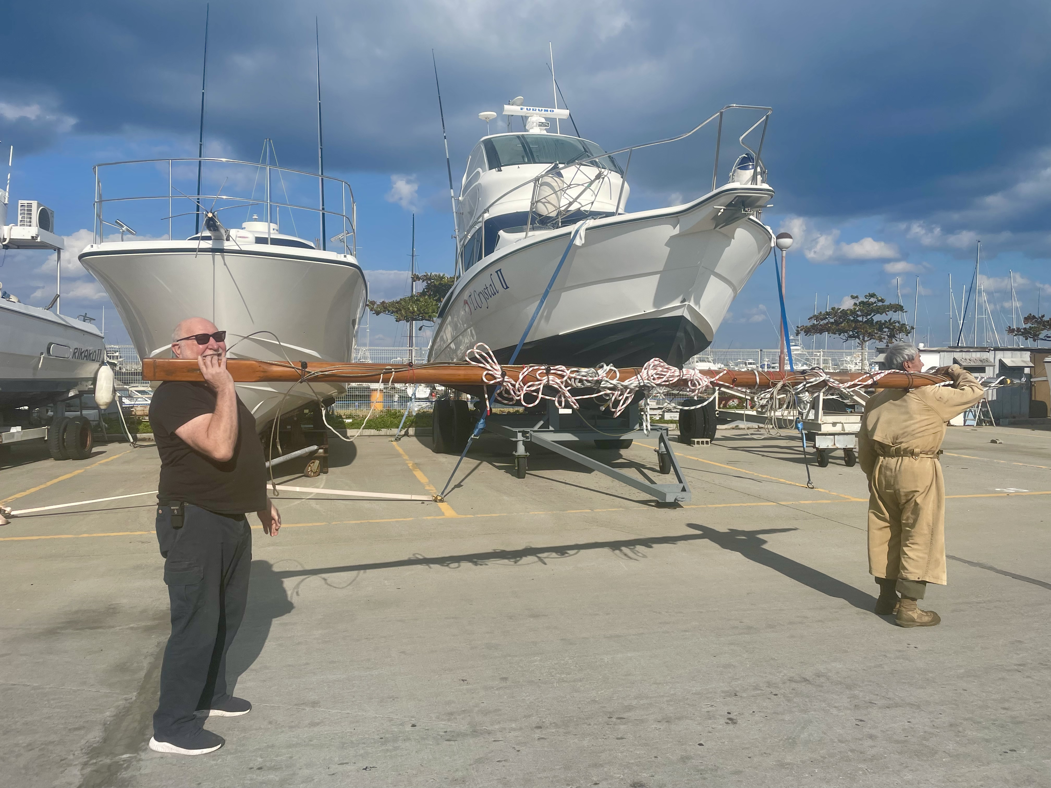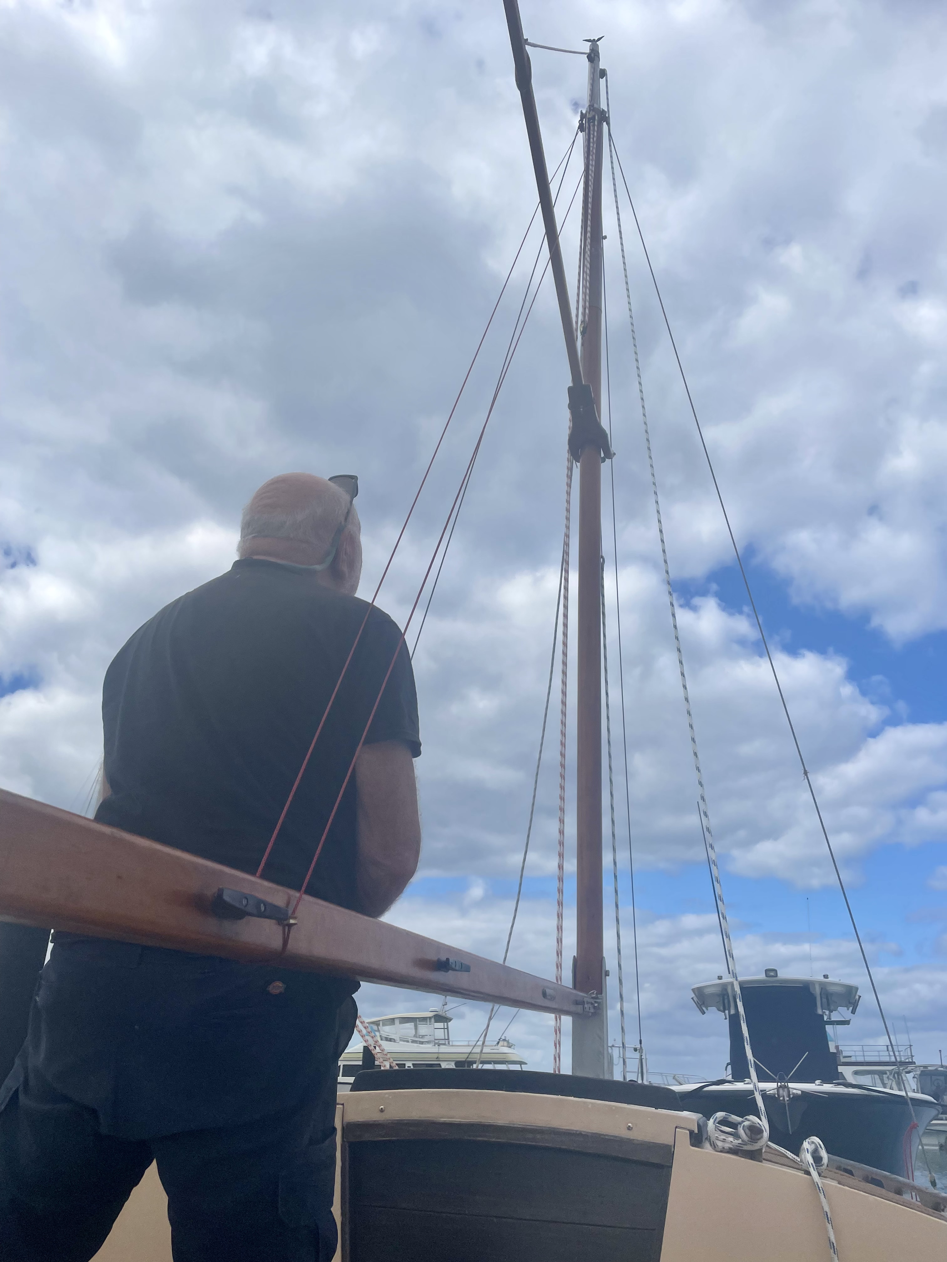 All the rigging successfully in place, Wantanabe san attaches the boom.