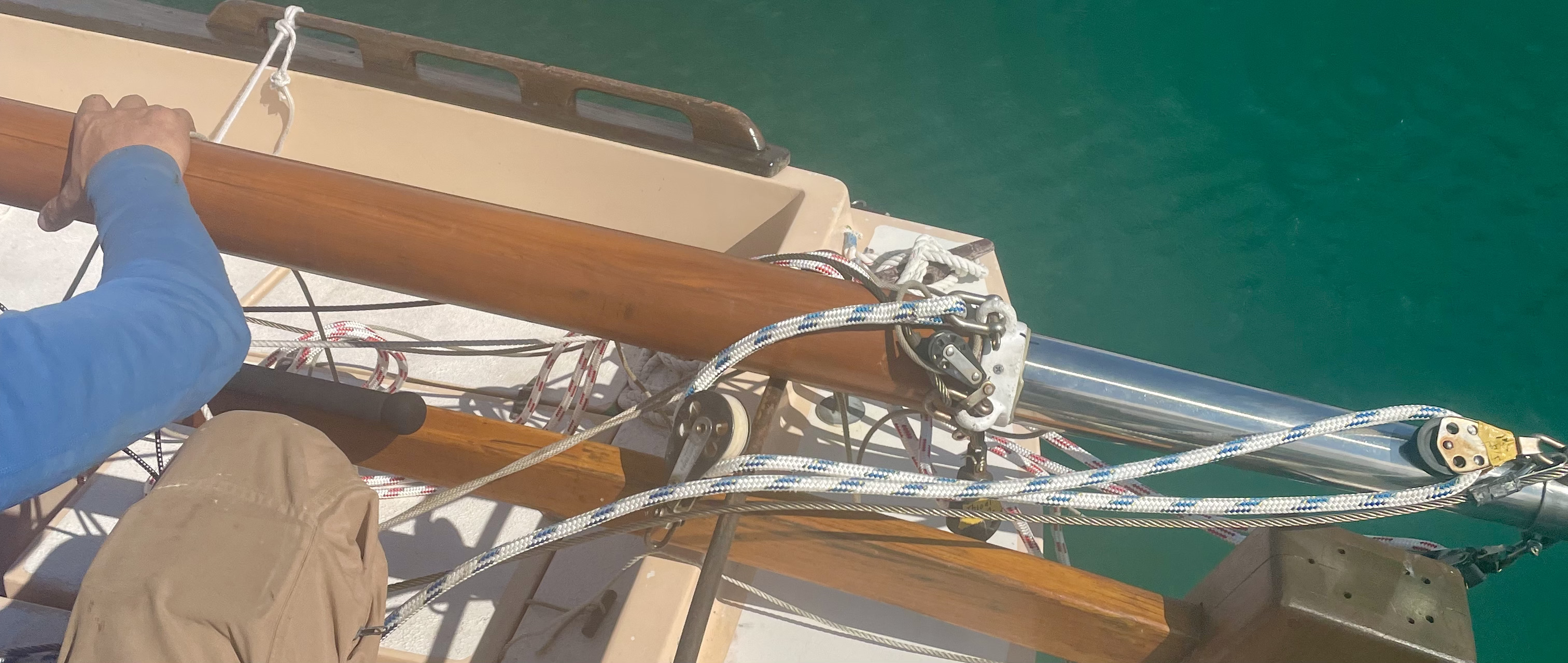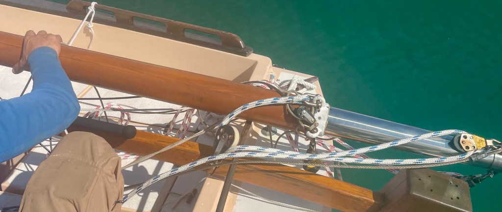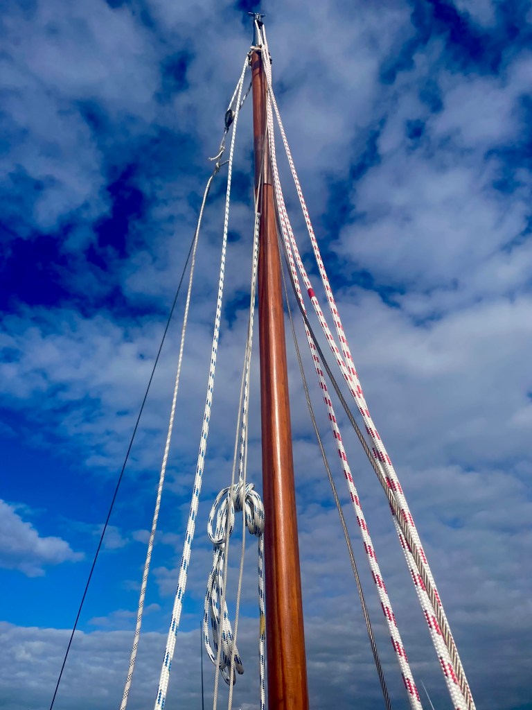 I take up my bed and walk! All new rope. Notice new topping lift in foreground.