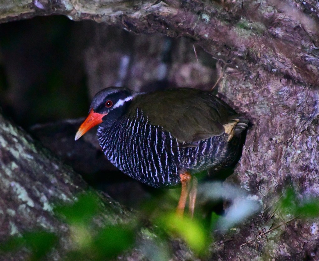 We go for a stroll around 11:30. It is beautifully cool and fresh. The stars are blazing. It is silent apart from the hooting of Scops owls. Ichiro san immediately spots an Okinawan Rail in a tree.