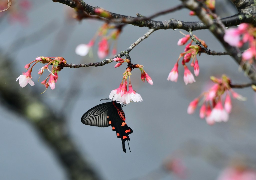 It is cherry blossom time in Okinawa. There are blooming trees and butterflies everywhere.