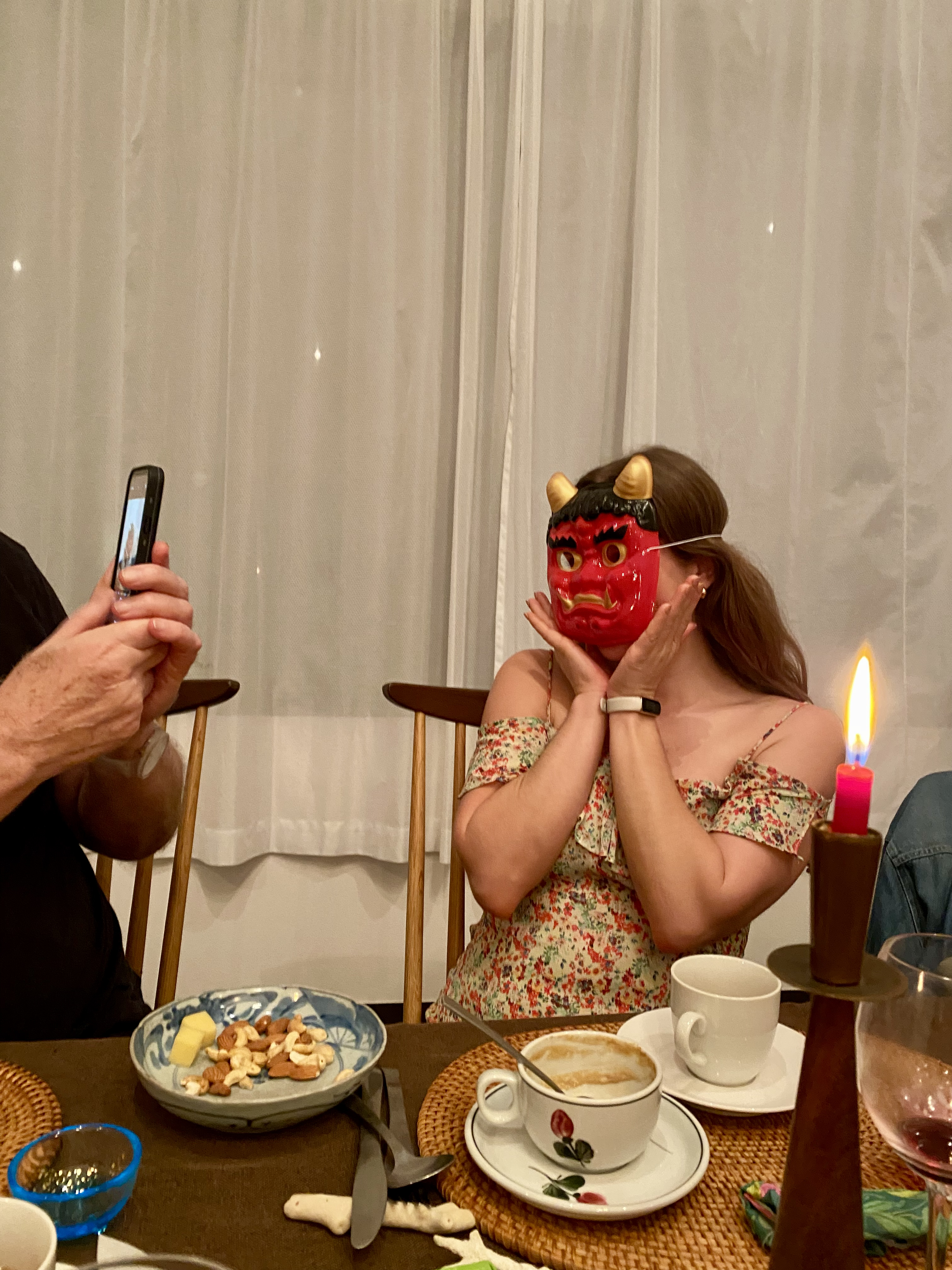 We run around shouting, ‘Devils out! Fortune in!’ and throwing soya beans around.