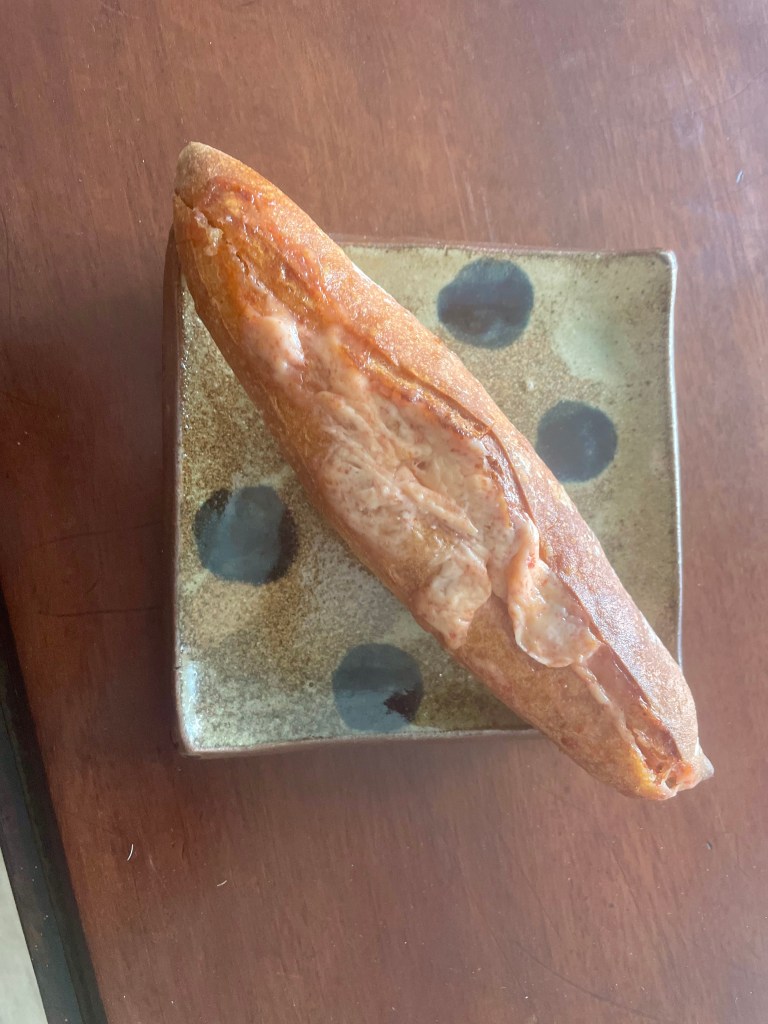 The bakery https://thequietripple.com/2022/12/29/fresh-bread/ that is a short hobble, my calf is still painful, from my apartment now does delicious mentaiko rolls.