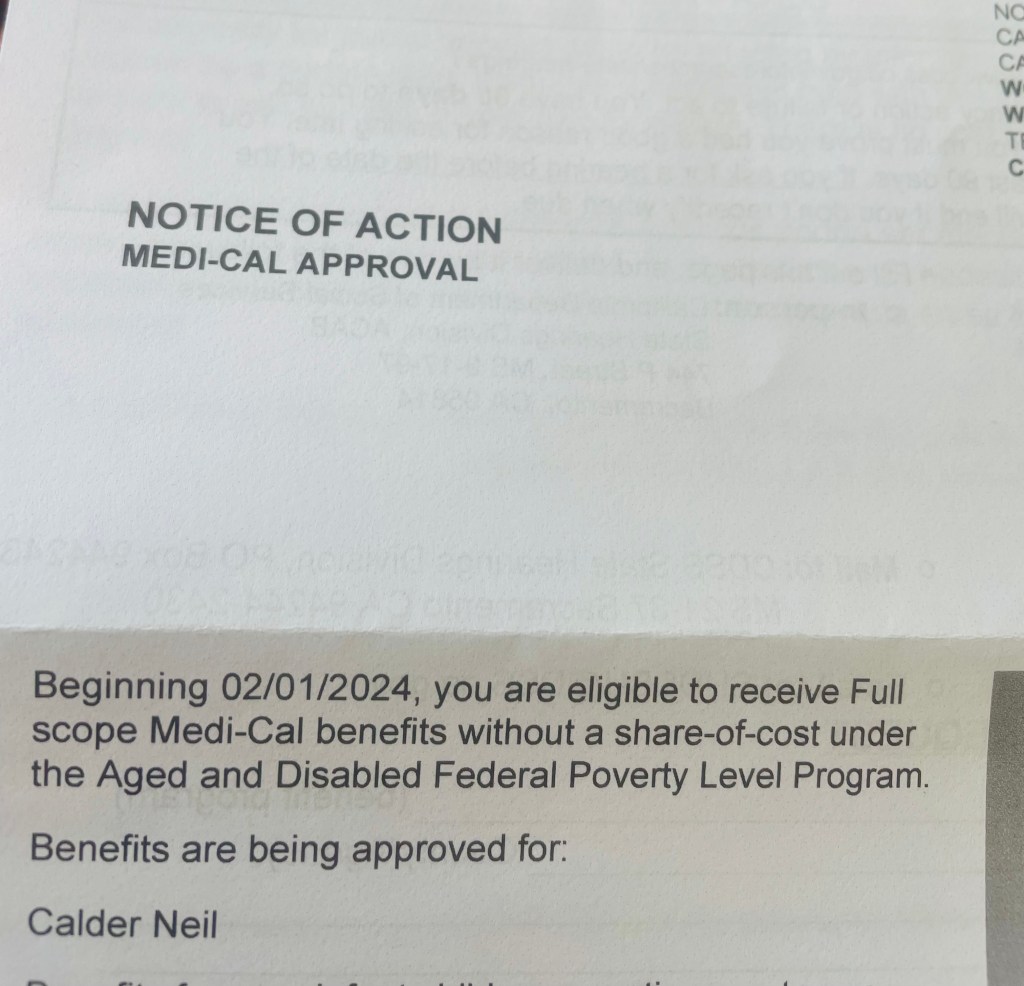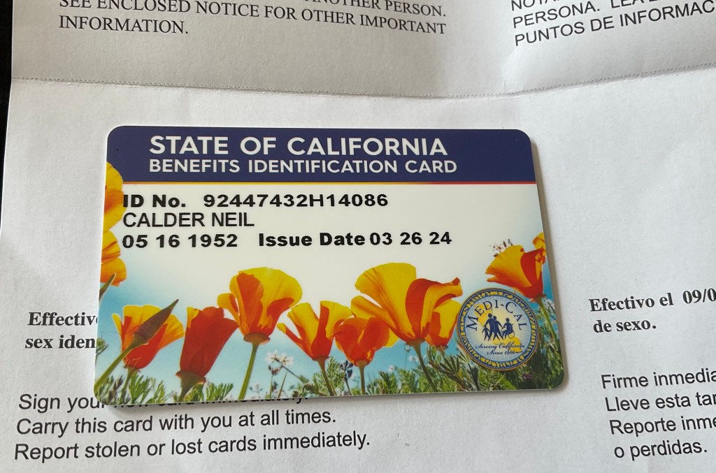 The next day, my card arrives. I now have free healthcare in California