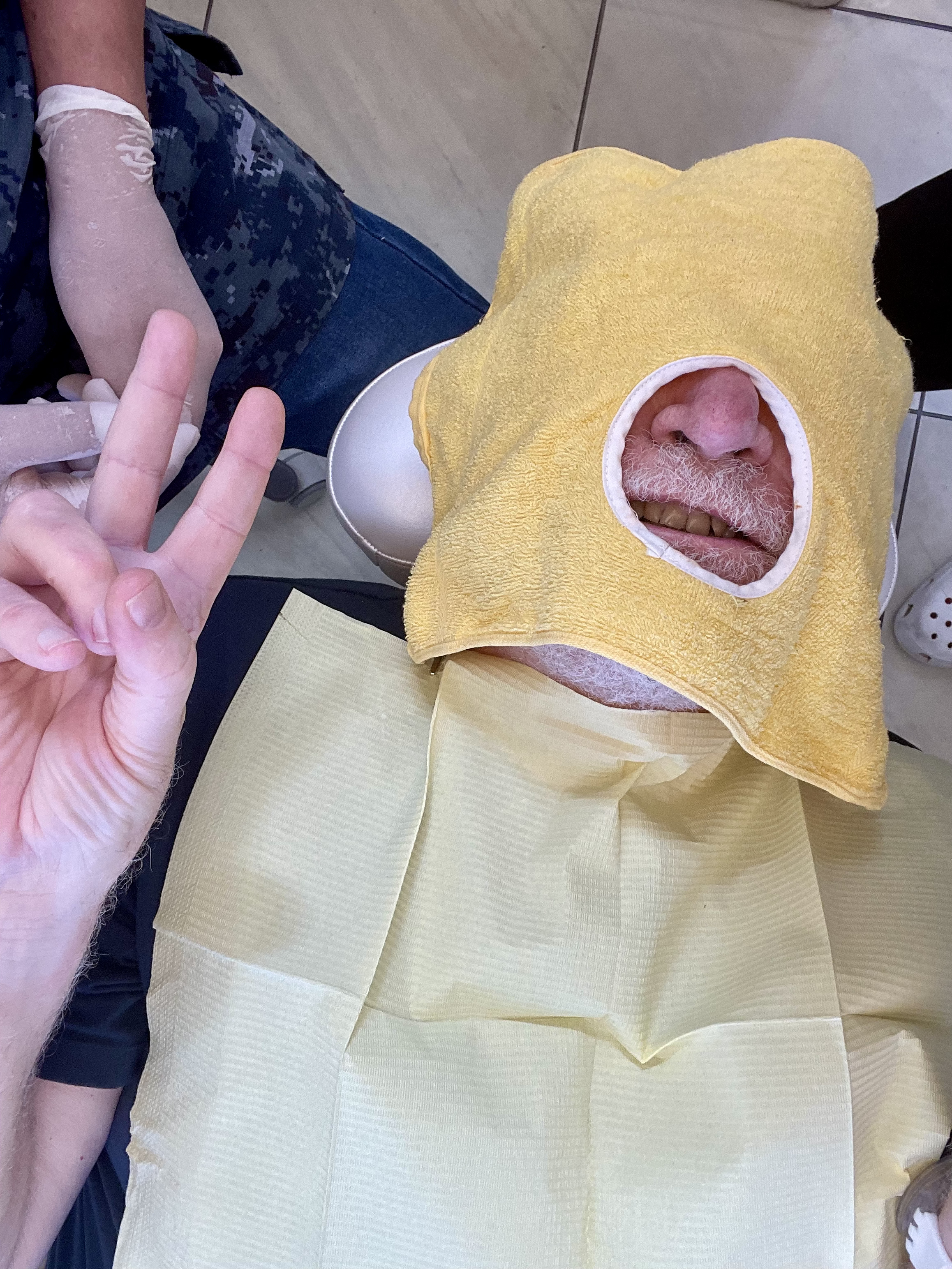 So destiny calls. I must lose two more teeth. Oh dear, this aging is not too much fun. At least they dress me up as a little flower prior to extraction.