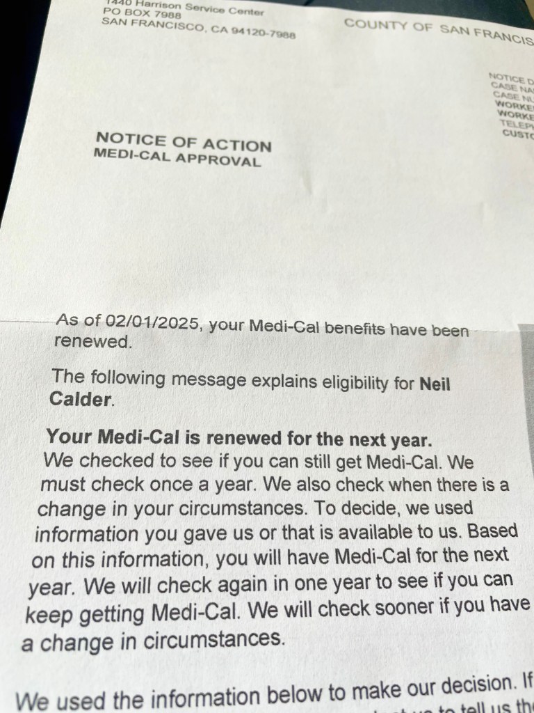 Good news, my Medi-Cal has been extended for another year!