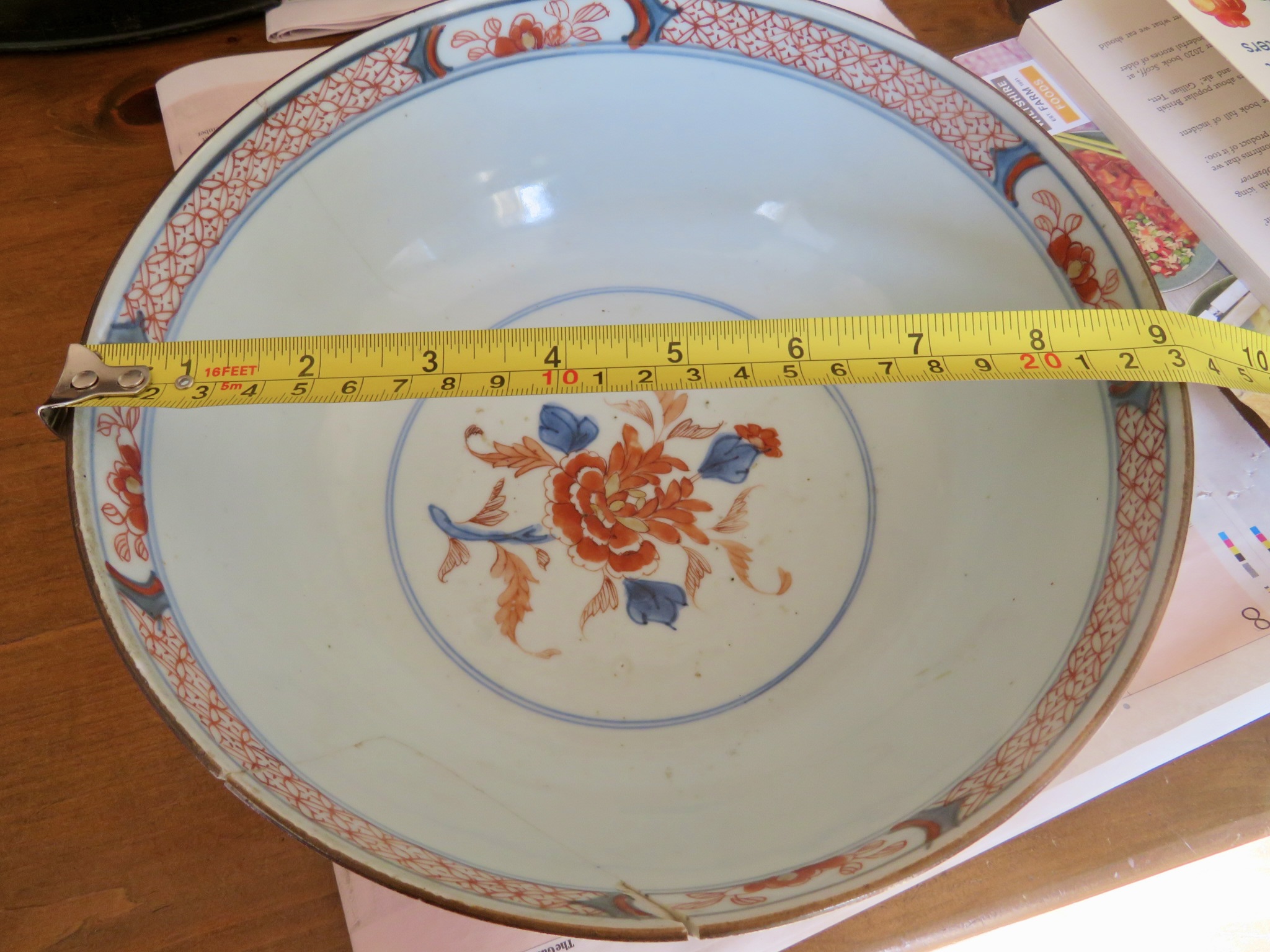 Brother Alan notices that the Imari plates used at recent meal are of similar design to a bowl that kicked around the house when we were young. I send the photos to Tomomi who replies that it is a remarkable piece of early porcelain, either Imari or Kakiemon . Whichever, it dates from the late 1600s.