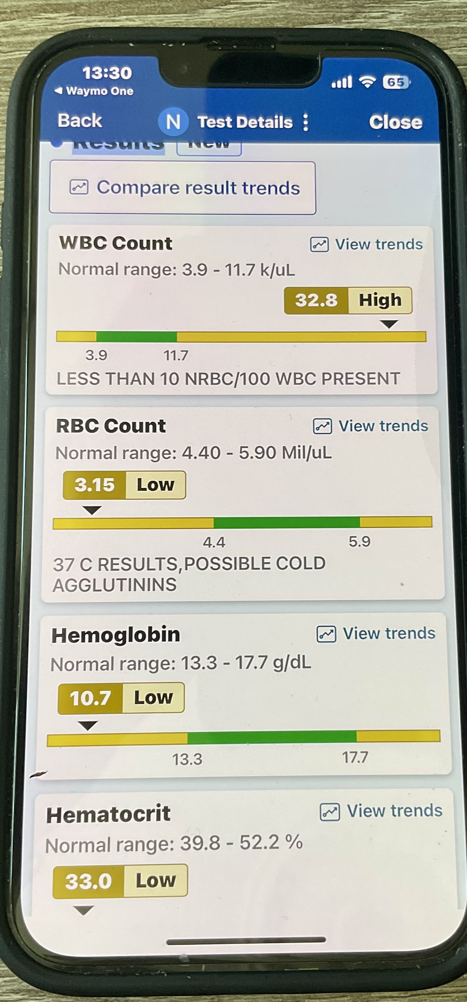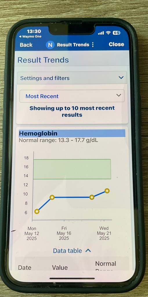 Good to see your haemoglobin is looking to be on the up – now for the rest of them!