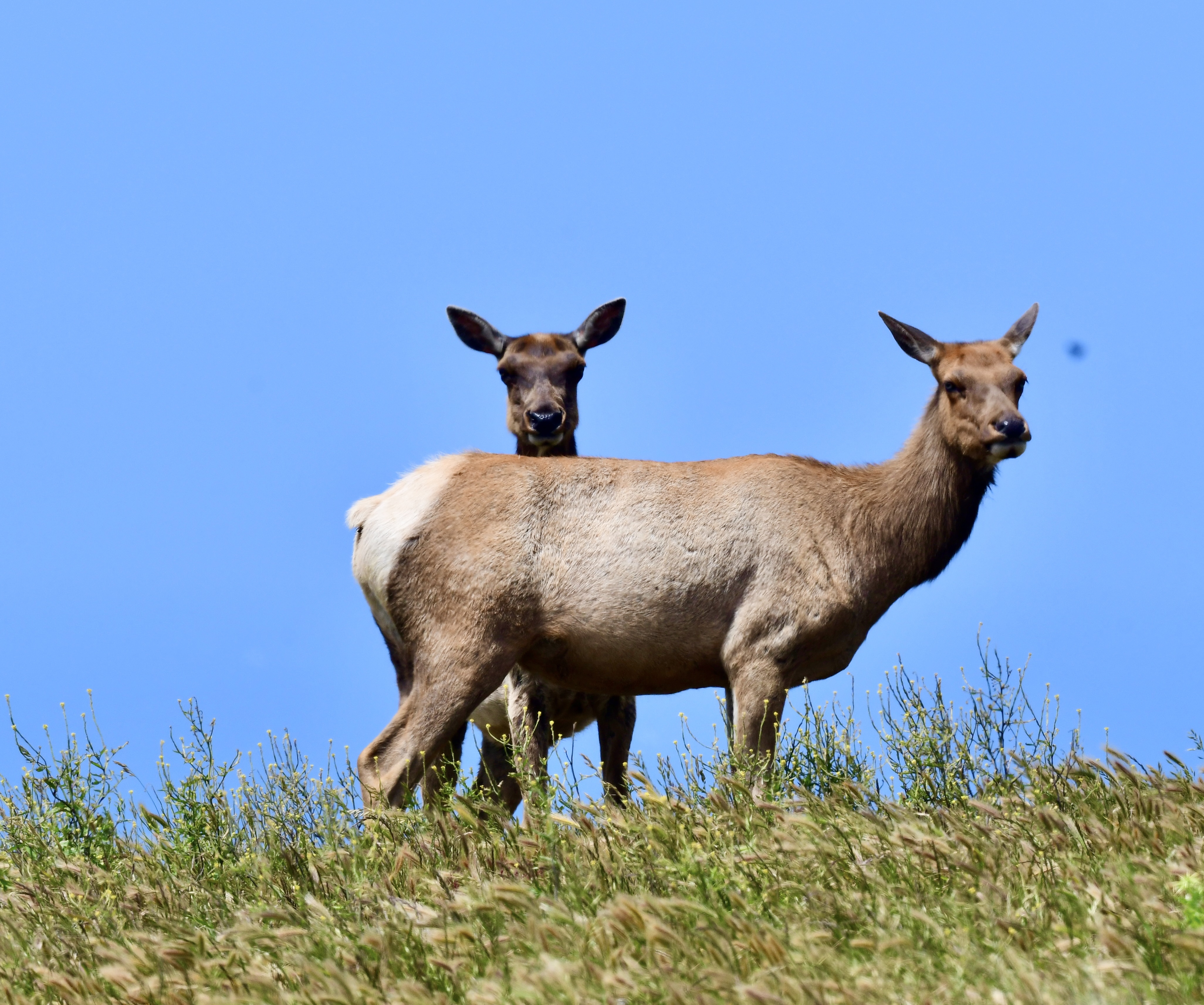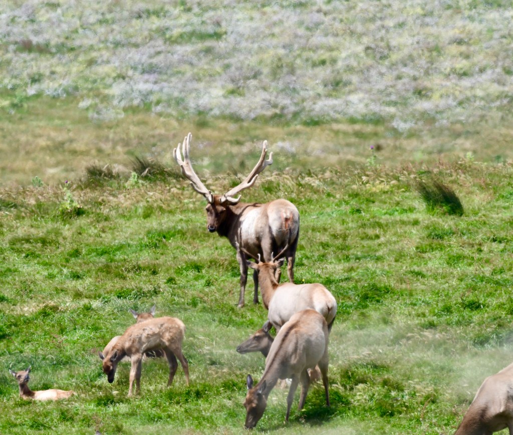 There are wildflowers everywhere, the sun is shining, the sky is blue and Elk.