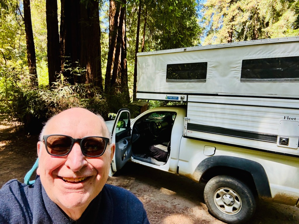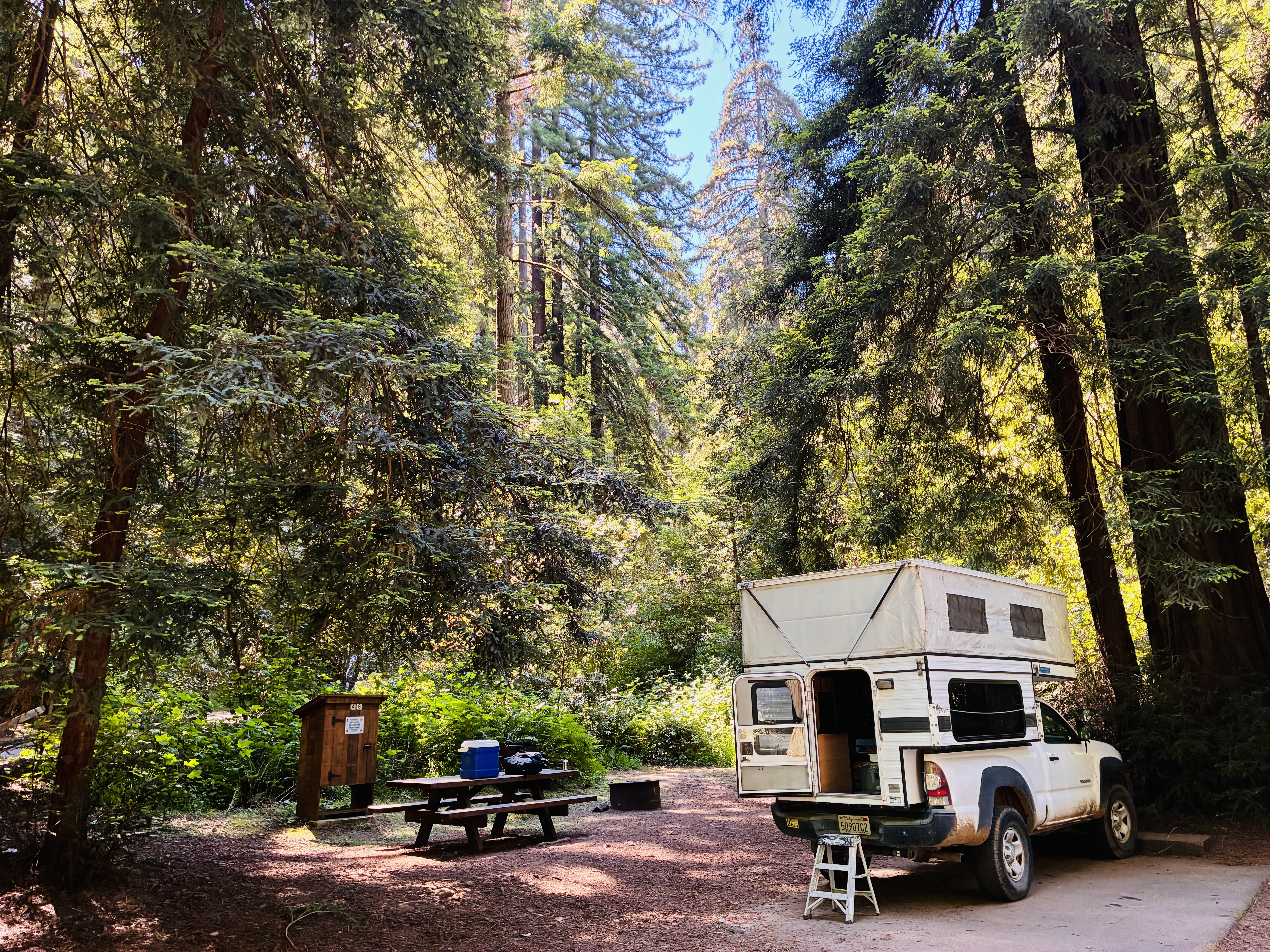I set up camp in the huge Redwoods. So beautiful, so quiet, so much wildlife.