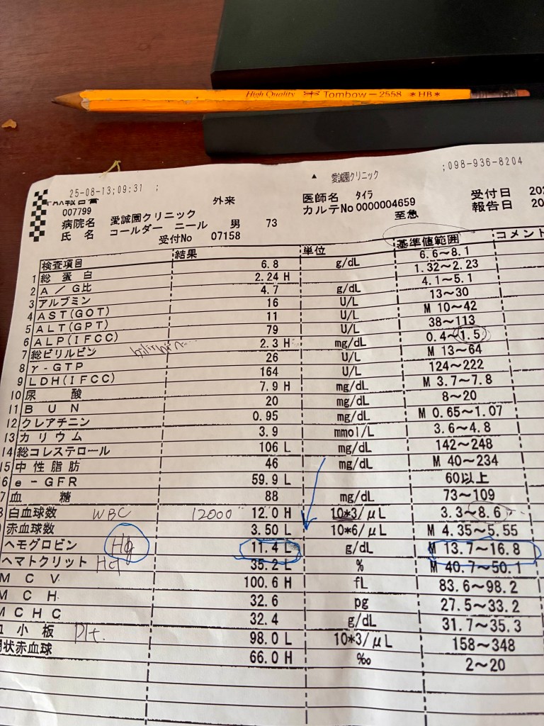 Ichiro san kindly drives me to the ornithologist to try to fix dates for cataract surgery. My eyesight is very poor which really hampers activity.