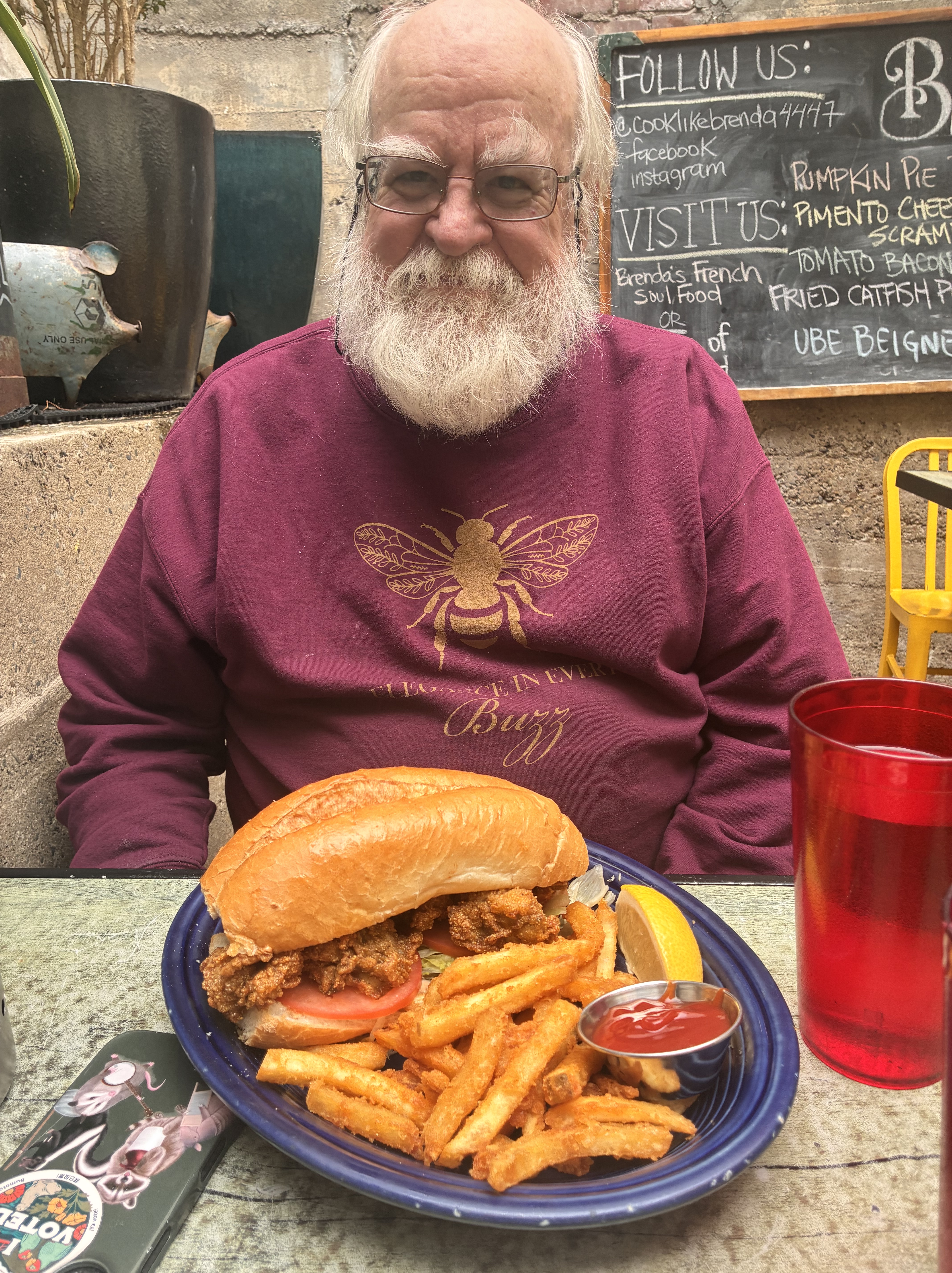 To celebrate phone ‘I once was lost but now I’m found’ scenario, Bebo and I have lunch.