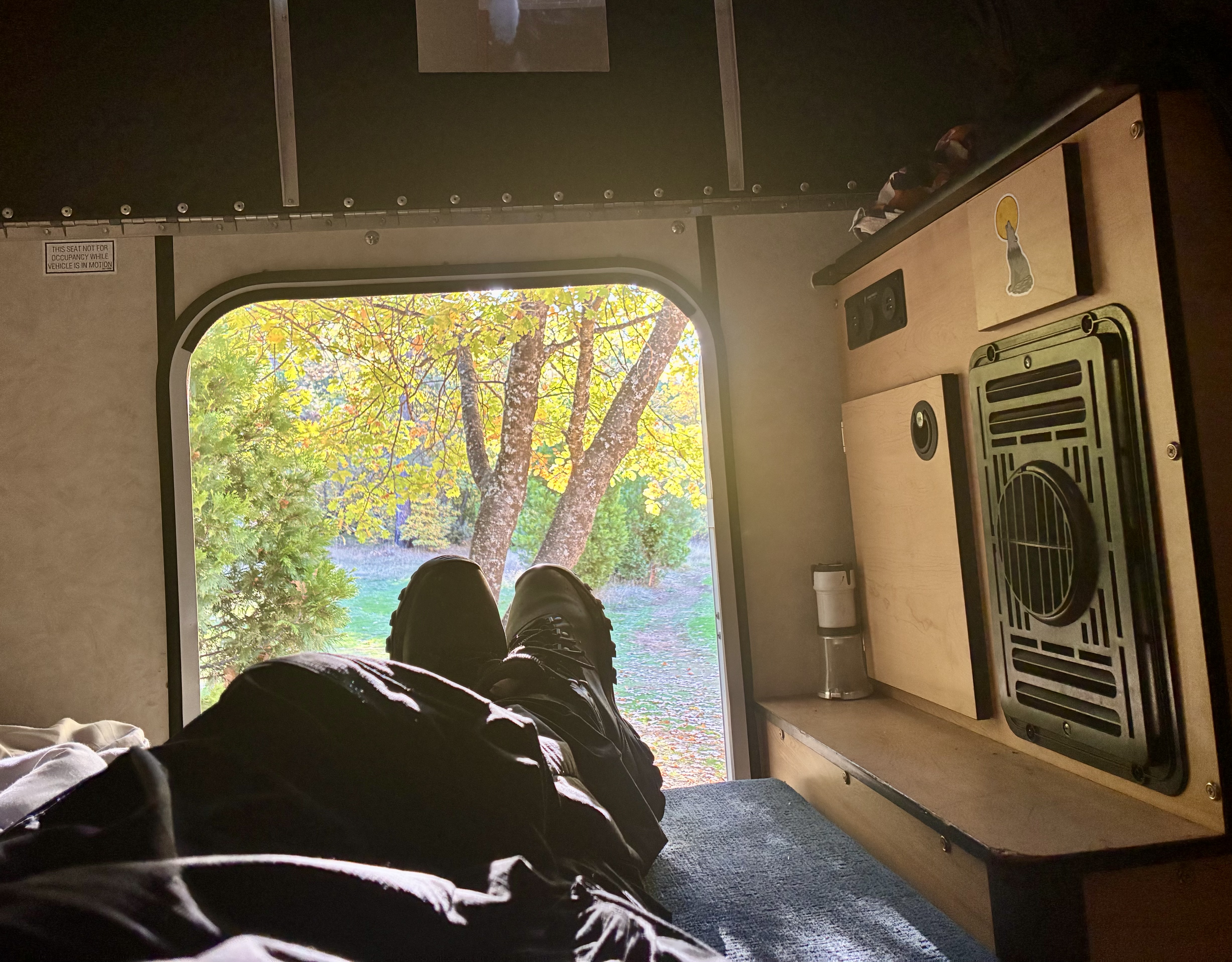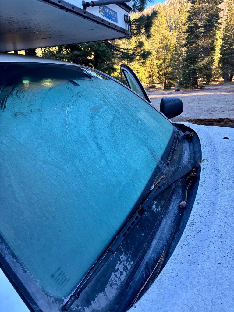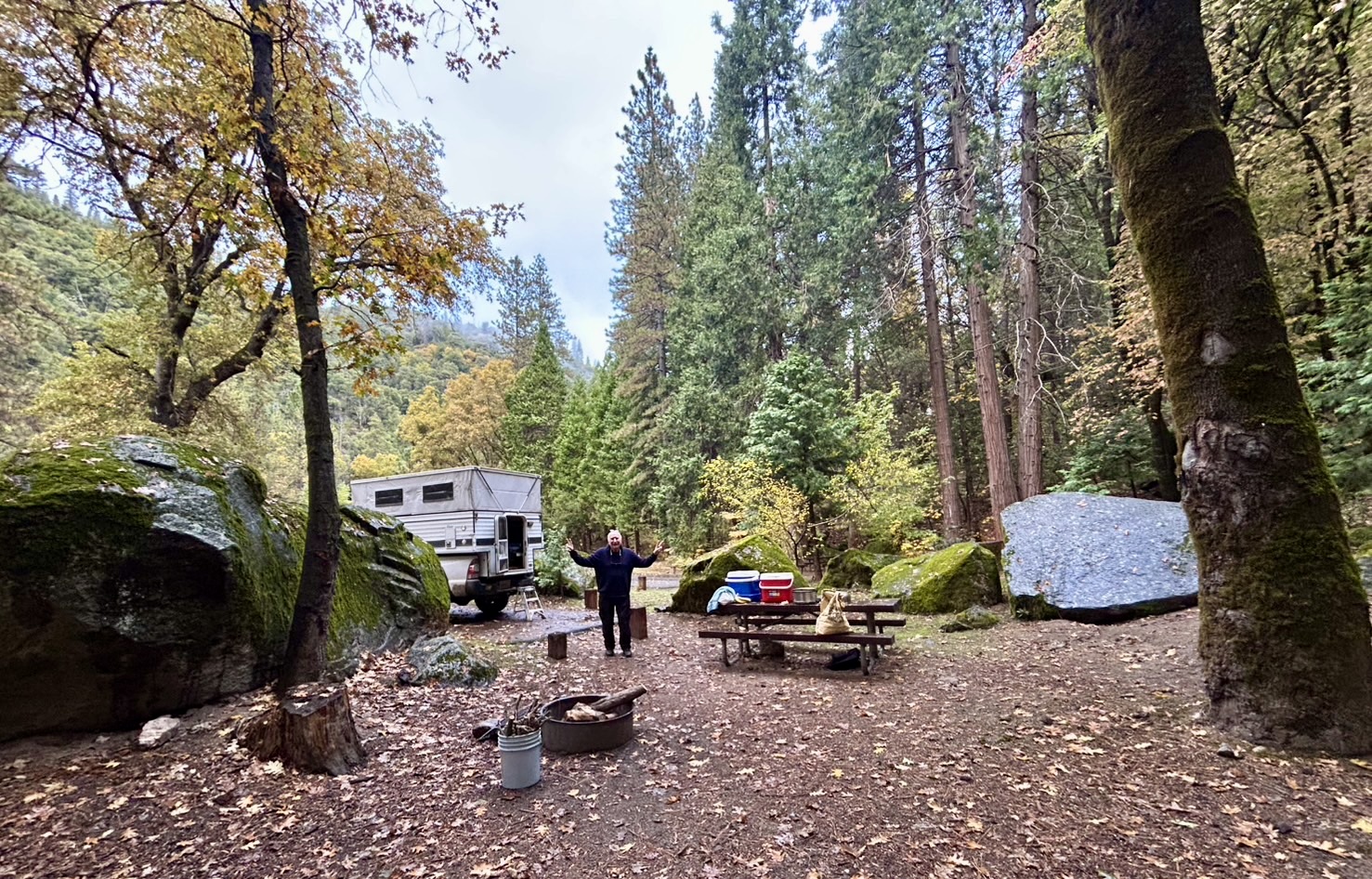 We drive around the Stanislaus National Forest, which is up by Yosemite for 3 days. Rough forest roads, beautiful Fall scenery, we see no one. We don’t know where we are most of the time. California is an incredible state. https://www.google.com/maps/place/Stanislaus+National+Forest/@38.2499716,-120.0829699,22301m/data=!3m1!1e3!4m6!3m5!1s0x809748cbbce65c61:0xc38bd0a09c84cb81!8m2!3d38.2501932!4d-120.0012955!16s%2Fg%2F1tfg7xzc?entry=ttu&g_ep=EgoyMDI1MTAyOS4yIKXMDSoASAFQAw%3D%3D