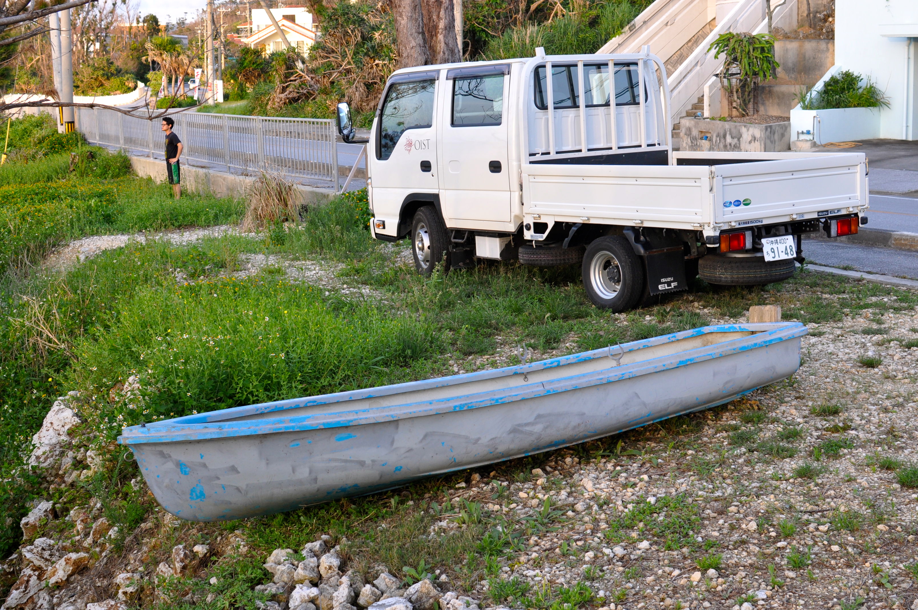 Chinen san runs a truly chaotic boat place. Old boats lie scattered around. Outboard motors, whose souls have already left, hang on racks. However once Ikeda san, a distinguished colleague, explains my broken heart, Chinen san is on the case and finds me a boat in a couple of days.