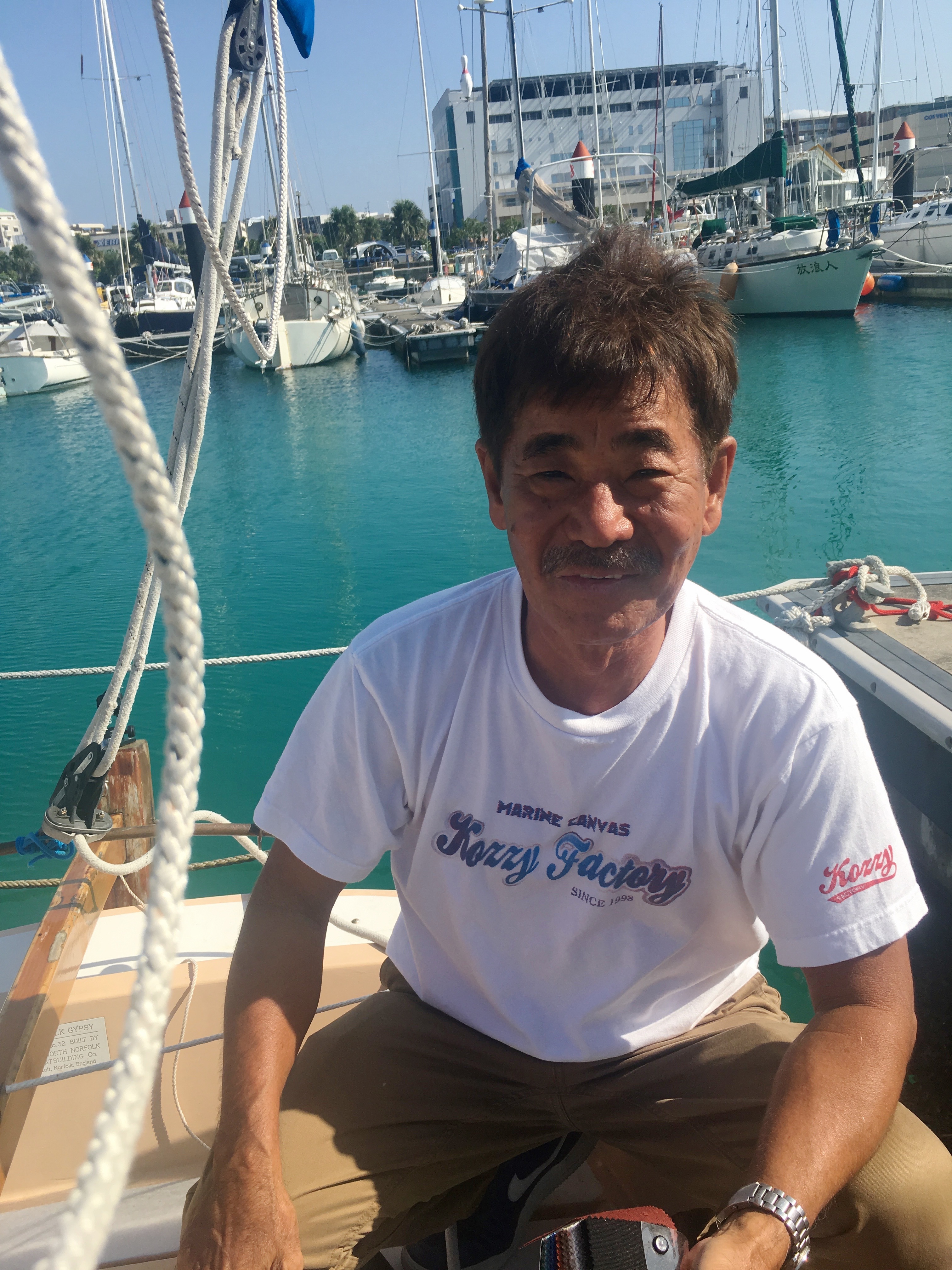 The cover was hand made by yet another Okinawan boating personality, the charming Mitsuda san.