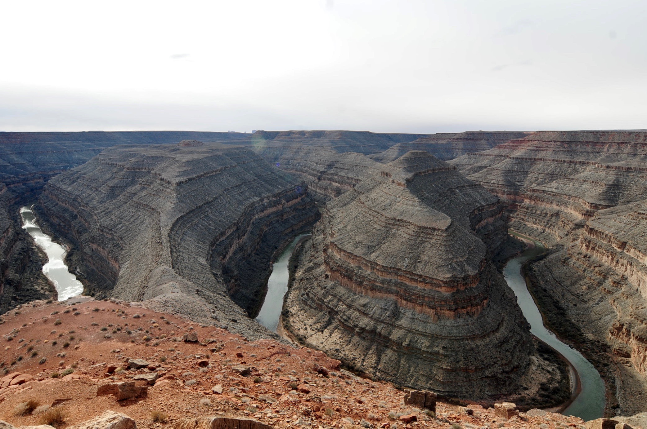 The Tarahumara folk ask if I can give them a ride to Urique. I make space on the bench seat but then they start unloading big crates of stuff from the stuck truck. We somehow manage to stow it all in the back of the camper and off we go again, still first and second up hairpins coated in greasy mud.